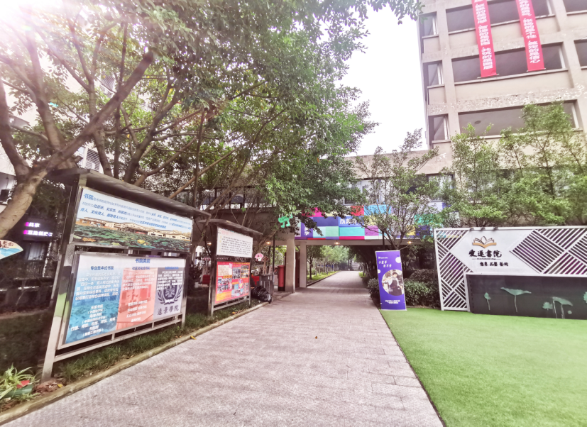 以爱莲小广场为基准,通过前置廊道塑造了其书院文化的展示界面,基于人们的视觉焦点与建筑的引导性,强调室内与室外的空间关系,广场上使用率最高的,是新增的移通独有的4人位摇椅,可下棋,可交流,可畅享,休闲装置的植入,也使爱莲更聚集了书院活力,延续了共享的社区精神。后期我们还会增加广场灯源,以“引力”中心为主题,设置草坪剧场、帐篷读书会,果核花园等内容,和同学们一起共享社交,共建美好。