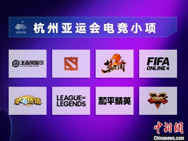 “据中新网杭州11月5日电,杭州2022年第19届亚运会专题新闻发布会上,杭州亚组委竞赛部部长朱启南代表杭州亚组委首次公布了杭州亚运会电子竞技小项设置,英雄联盟、王者荣耀(亚运版)、和平精英(亚运版)、炉石传说、刀塔2、梦三国2、街霸5和FIFA Online4等8个项目入选。据介绍,经过亚洲电子竞技联合会、亚奥理事会、国家体育总局多方商议,综合考虑竞技规则的公平性、内容的价值取向、国际影响力和宣传推广等因素,杭州亚运会最终确定上述入选项目。”电子竞技这一新兴体育项目和亚运会的全新融合,越来越体现出国家对年轻群体的关注度。