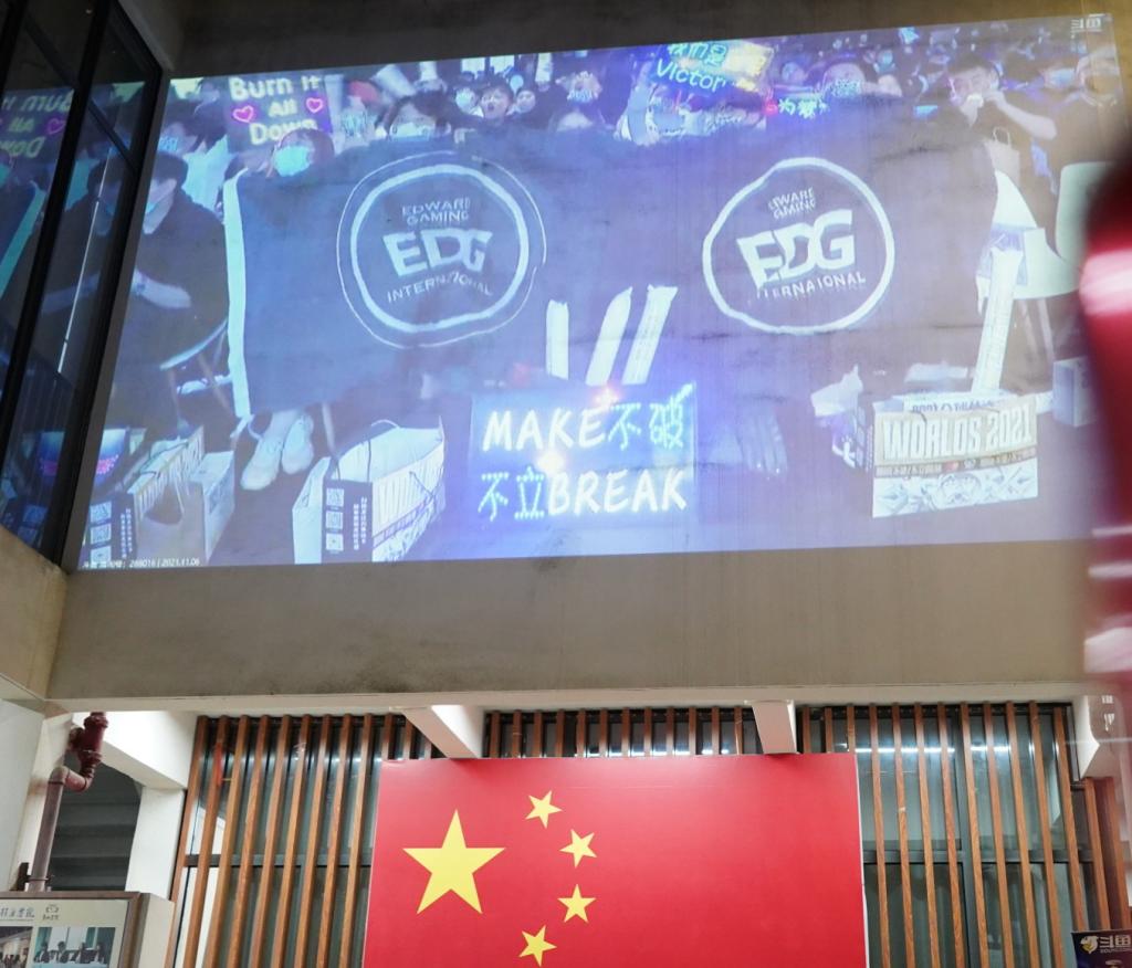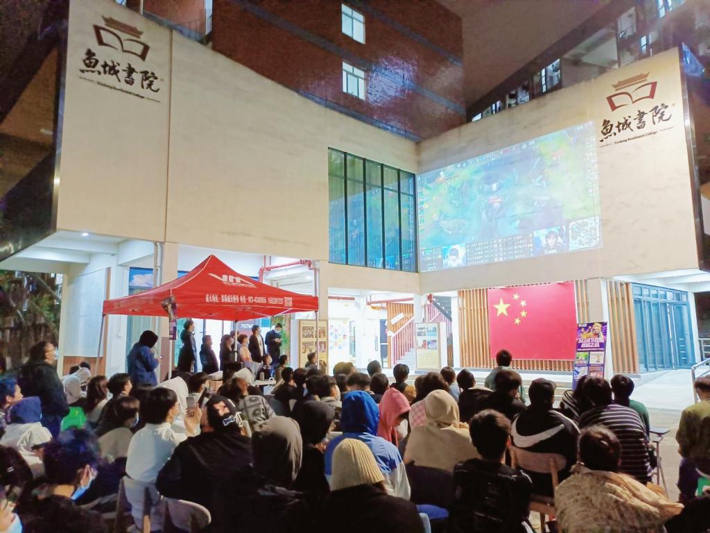 信手欲止不系舟,不破不立定此时!2021年11月6日2021英雄联盟全球总决赛在冰岛雷克雅未克进行,其中EDG战队与DK战队展开对召唤师奖杯的最终追逐,无数人心系的比赛终于拉开了帷幕。为见证2021全球英雄联盟比赛冠军的诞生,立足“游戏与思辨系列”赛事活动,在做好疫情防控的前提下,鱼城书院携手电子竞技协会在鱼城书院广场进行了英雄联盟2021年全球总决赛S11决赛的观赛直播,破圈而行,助力EDG夺冠,建设以学生为中心的完满书院。