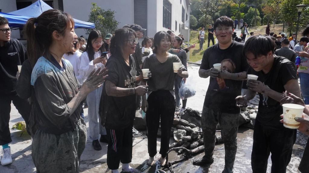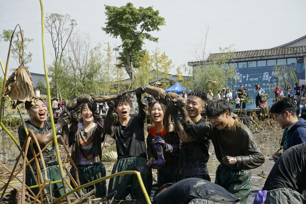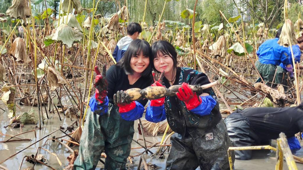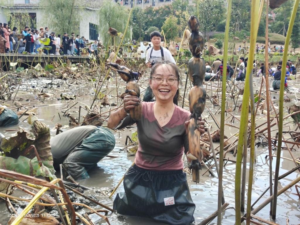 暌违一年,“荷叶田田·藕趣横生”书院“家”校园荷塘文化节在全校师生的期待下再度回归,160余名师生迎着国庆后的第一个暖阳,携手共赴泥塘,或单兵作战、苦苦坚持,或团队协作、共谋战绩,或轮番上阵、鏖战荷塘;同时,1000余名网友通过“共话别都”直播平台实时见证,开启欢乐网络“云吸藕”。最终,师生们战胜了霜降水中苦寒、战胜了荷塘淤泥羁绊,徒手采挖莲藕1600余斤!再度翻新往届记录,实现莲藕自由。