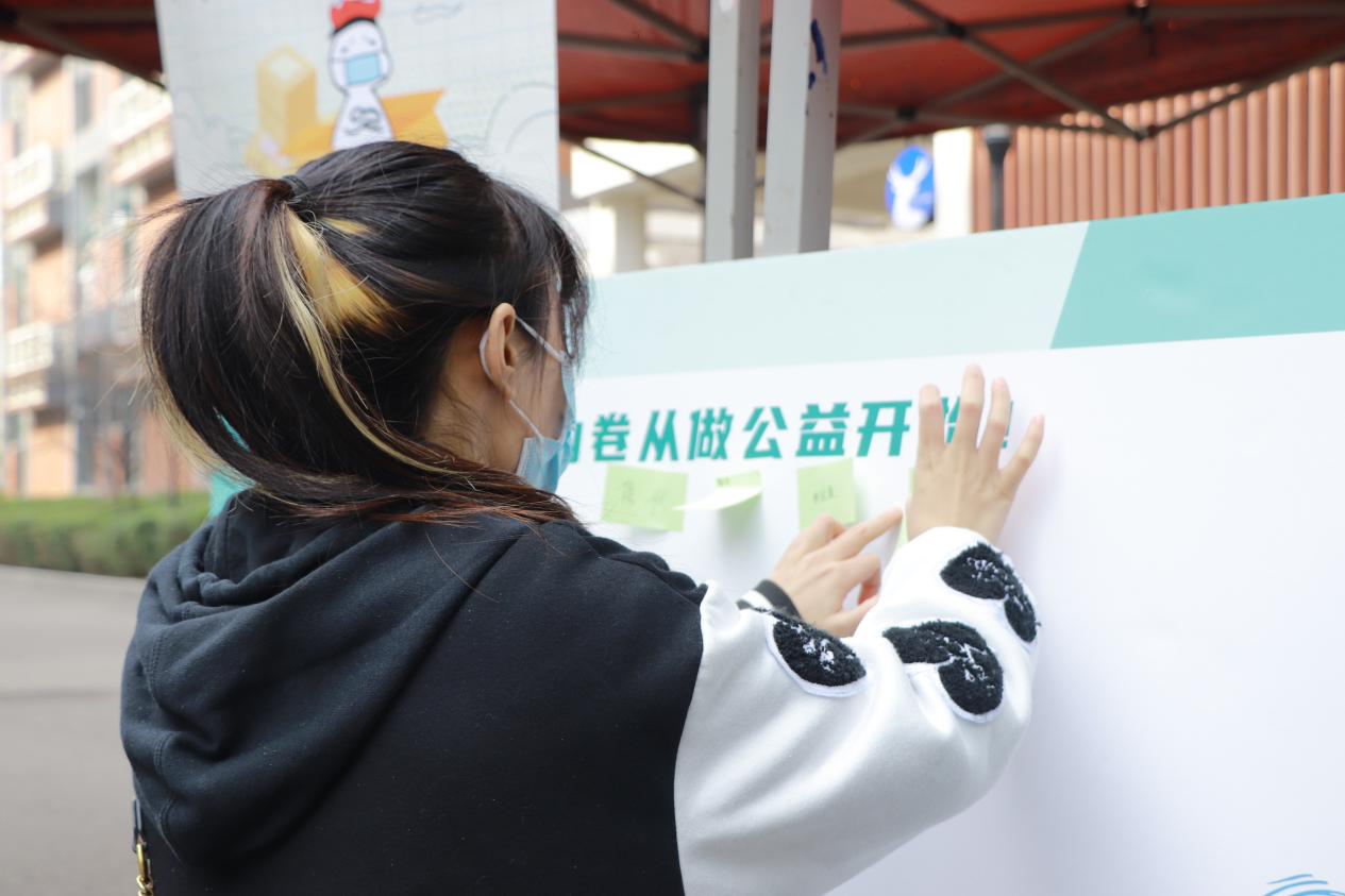 秉持着变废为宝、诚信交换的理念,结合11月“青年信用体系推广建设月”主题,不论纸箱大小,参与者只需整理好纸箱,根据兑换规则自助兑换相应物资,并在签名墙上留下对构建绿色校园的号召话语,尽自己的绵薄之力贡献在公益环保的路上,让更多师生参与到活动之中,传递公益精神。