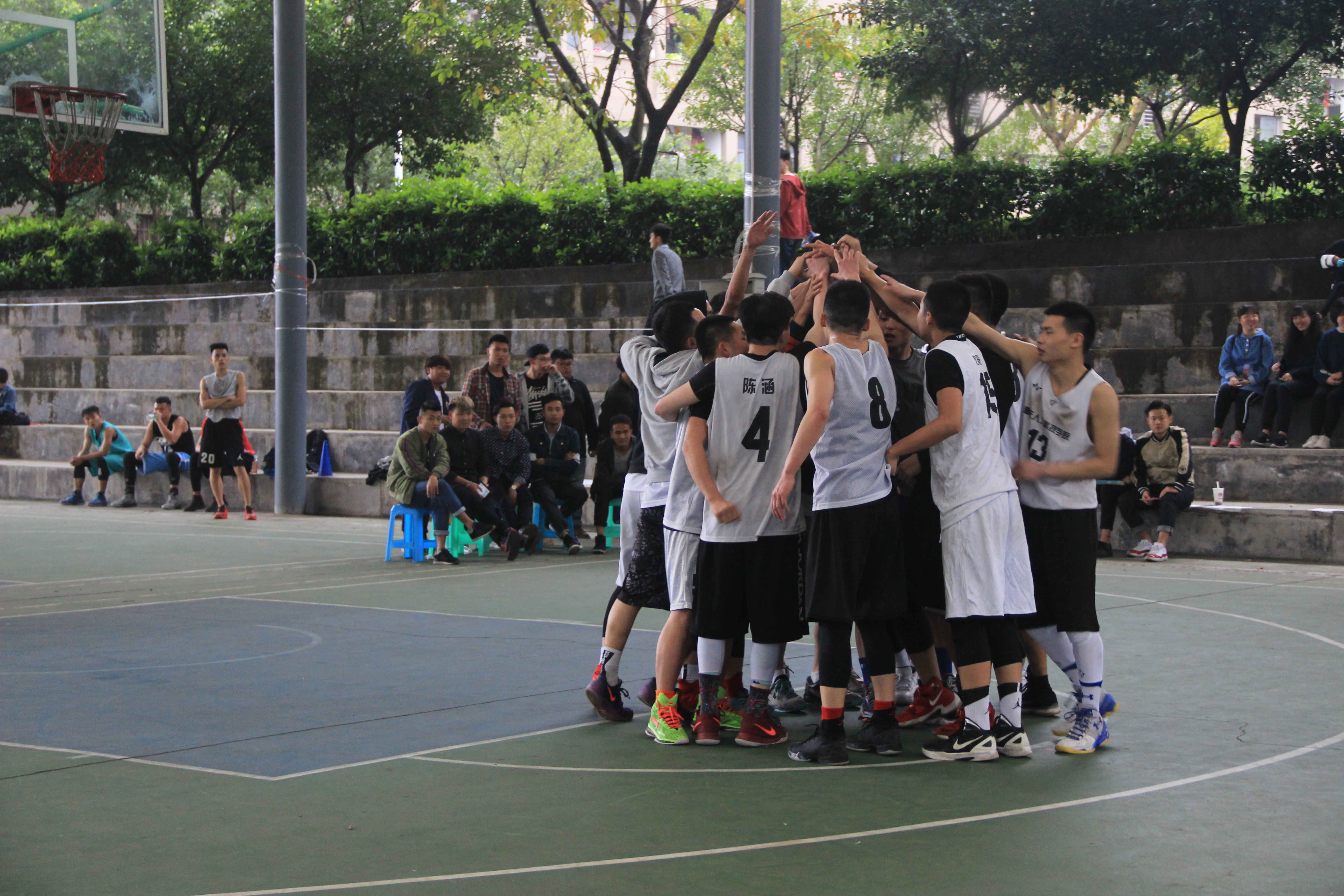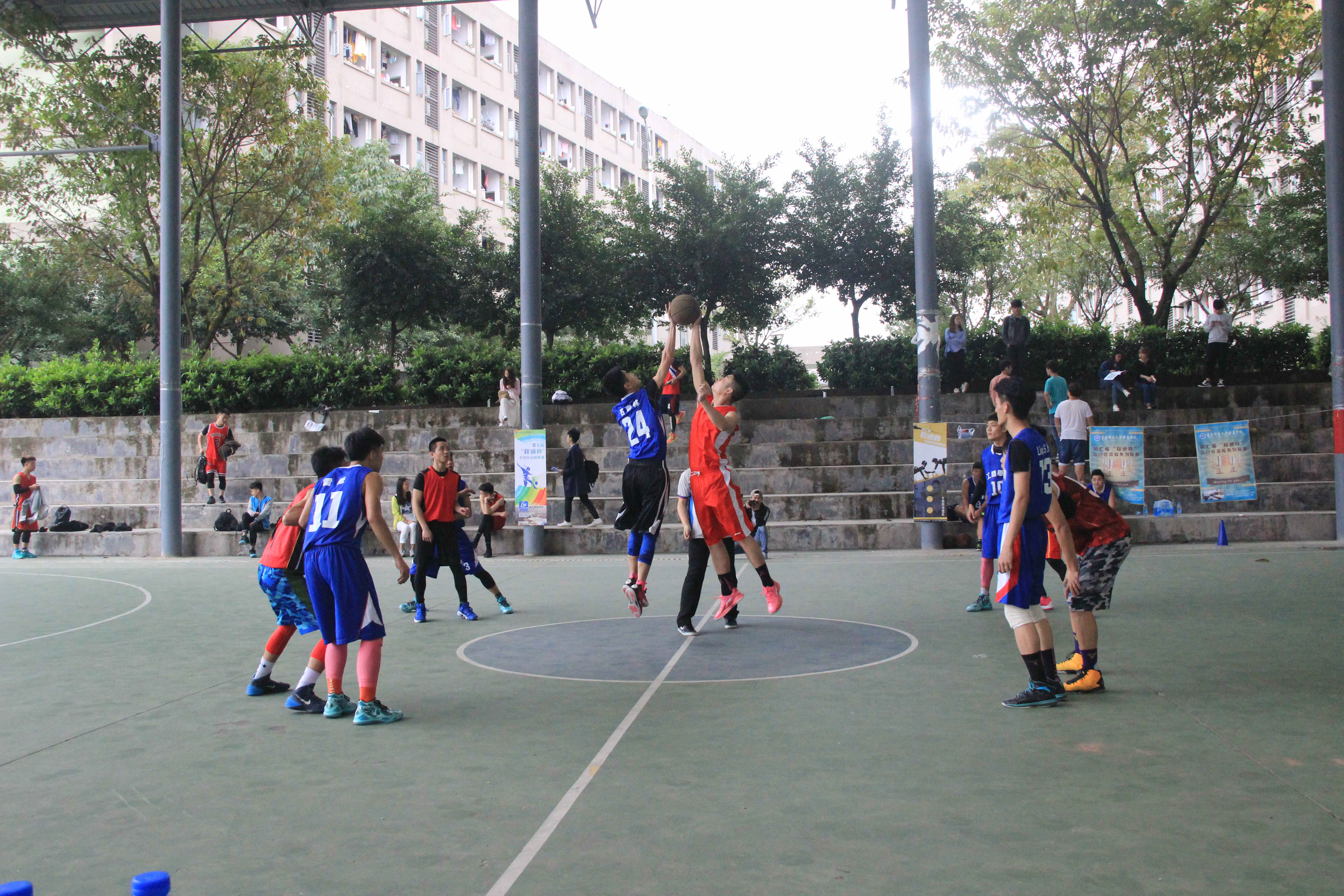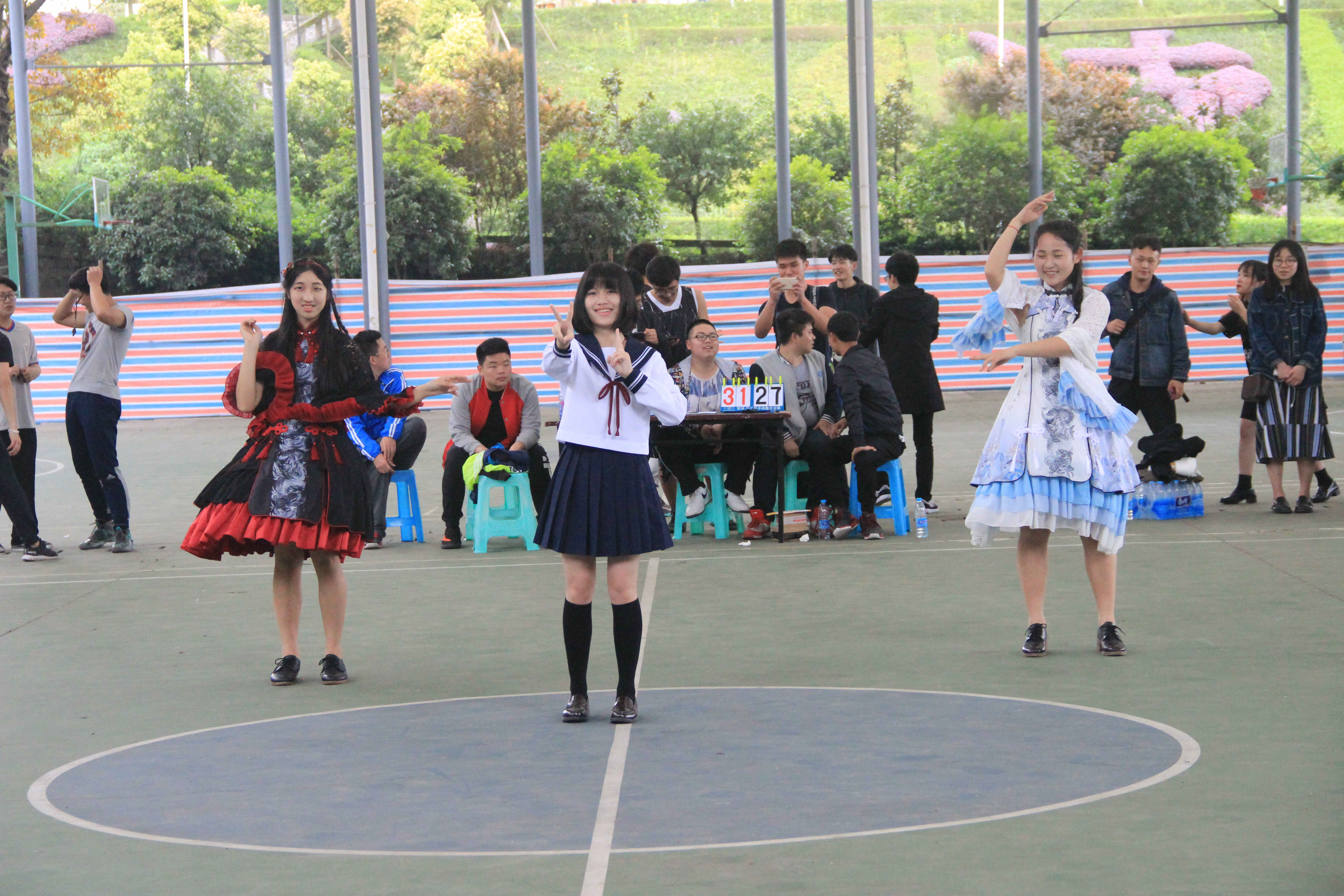 哨声响起,篮球和篮筐便是队员们的唯一的执念,看他们运球、传球、投篮、进了!来回奔跑的健儿伴随着下台不时的“好球!”声让今天的风雨篮球场格外热闹。而中场由我校双枼动漫社带来的舞蹈秀更是将气氛推向高潮。球场上队员们是肆意的王者,而休息时方圆的球场便是他们的舞台!除去全力的奔跑,篮球的迷人之处更在于团体力量的集中迸发:队友进球,我们为你叫好!一记绝杀,我们为你骄傲!有人受伤,我们送上关怀!这便是团队,分工明确而又紧密相连,他们是朋友更似亲人。