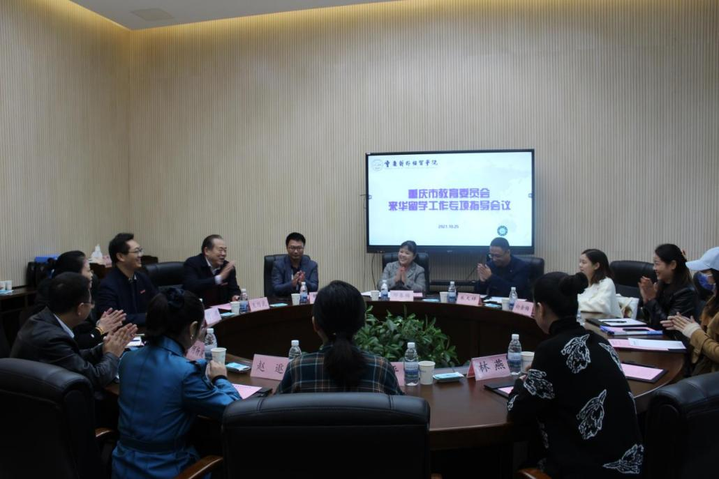 10月26日上午,重庆市教育委员会来华留学工作专家组邓春梅、朱天祥、钟南征一行来合在重庆对外经贸学院开展高校来华留学工作专项指导会议,我校国际交流与合作处毛敏副处长、向金梅老师参会并汇报工作。