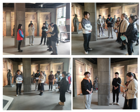 对于前言部分的考核,陈巧蓉老师首先从讲解员带领游客进入博物馆的仪态进行考核。起初,讲解员们不知所措,会长谢婷婷以自然大方的仪态为大家演示;观摩之后,讲解员们逐次带领“游客”步入大厅,在考核过程中,陈老师提到讲解时要注意肢体动作和仪表状态,以示对别人的尊重;讲解时,要与游客进行互动,和游客进行眼神交流,注意语气、吐字清晰、声音宏亮,要让听众听清楚所讲解的内容;同时,用语需恰当,避免因口误。