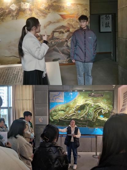 为了使讲解员们对钓鱼城遗址模型的讲解思路更加清晰,杜春梅老师提到,“以图说话,以图记忆”,例如在讲解三江环绕钓鱼城防御体系的特点时,应从钓鱼城地理位置图分析其战略地位,准确无误说出三江的具体名字,也可以利用沙盘地图去梳理战役及军队行军路线,使参观者对宋蒙战争发展有更为清晰的认识;部分同学的讲解之后,杜老师对讲解员们提出了一些建议:在提高对讲解词熟悉度的前提下,用富有感情的语言去说明人物的特点,且每个人物之间的衔接要流畅自然;学会将书面化的讲解词通俗化,提高趣味性,让游客更容易理解;同时,讲解员应该在讲解中与听众进行眼神交流,随时观察游客的状态,并据此调整讲解的速度和侧重点;在平时练习讲解时,可以采取对着镜子讲解的方式来发现自己的问题。