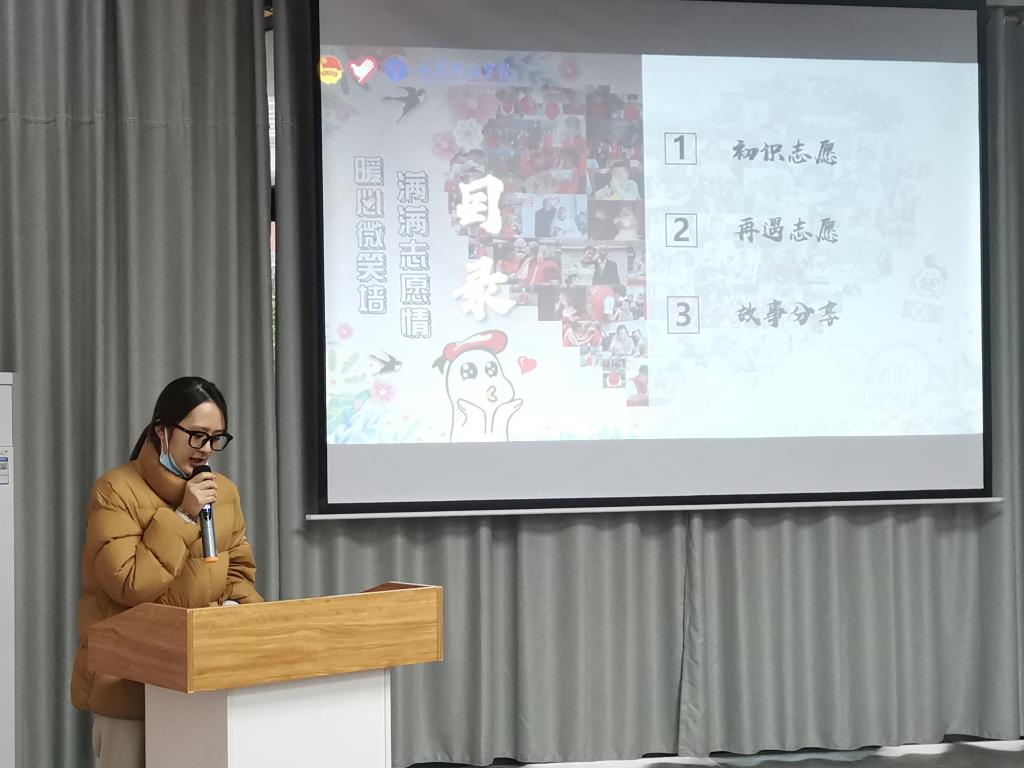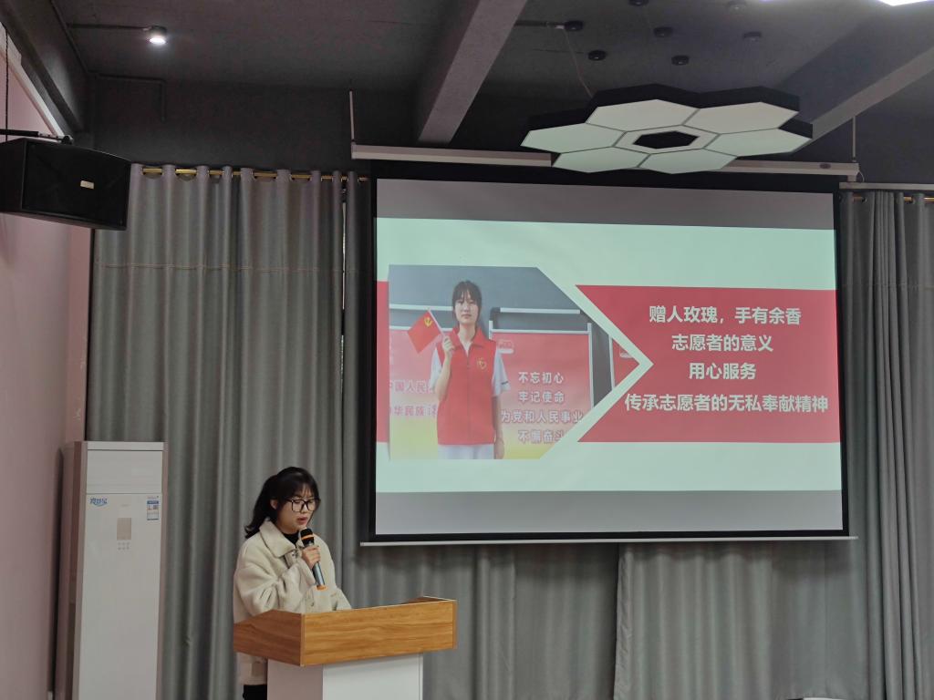 “坚持做志愿活动的目的从来不是志愿工作有多优秀,而是在每次志愿活动中的那份真情,志愿者的意义在于用心服务,赠人玫瑰,手有余香。“青联指导老师汪小丁老师从“初遇志愿、再遇志愿、分享志愿”三个方面,为同学们讲述身边的志愿人、志愿事,鼓励同学们秉承初心始终坚持志愿服务工作,让同学们对志愿服务精神有新的认识和理解。