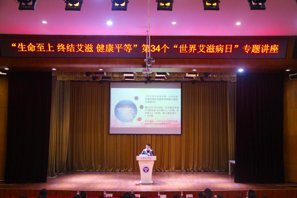 为促进在校大学生对艾滋病的认识,倡导同学们健康生活方式,形成重视艾滋病防治工作的良好氛围,2021年12月1日,通信与信息工程学院青年志愿者协会在下里巴人举办“以艾之名,爱传你我”暨“生命至上终结艾滋健康平等”第34个“世界艾滋病日”专题讲座,宣传普及艾滋病预防知识。