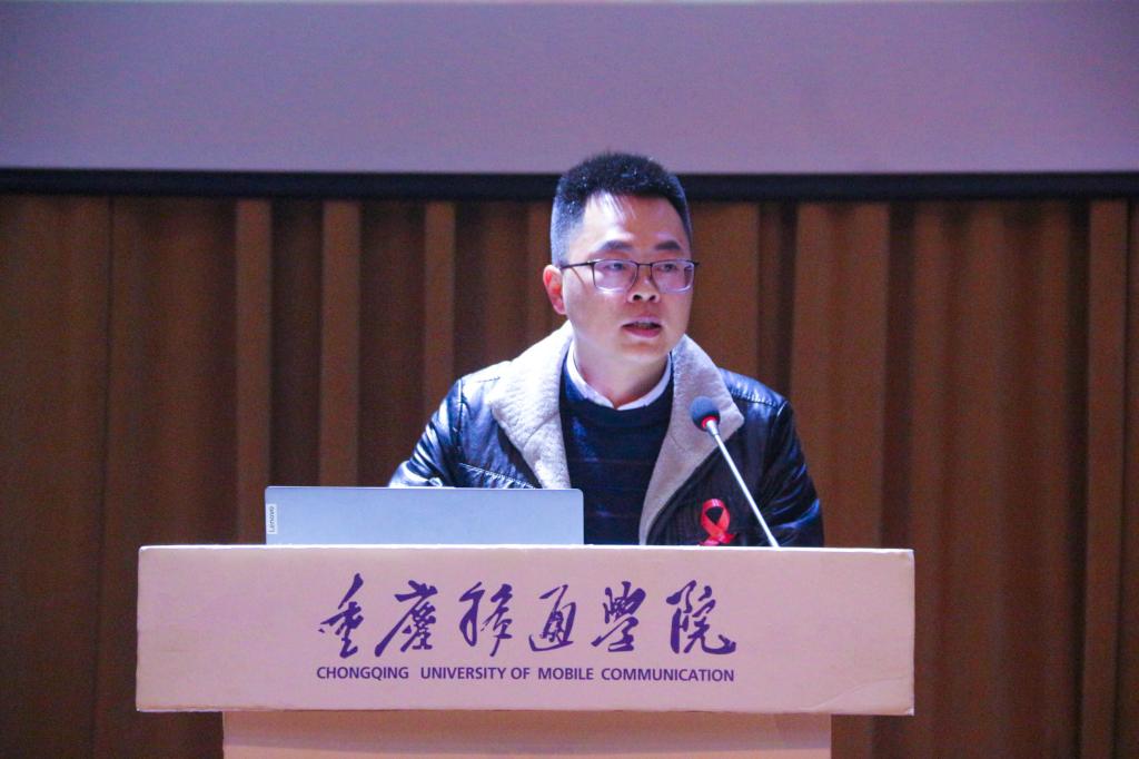 通信与信息工程学院青年志愿者协会特邀合川区疾控中心性病艾滋病防治科负责人柏兴建老师、通信与信息工程学院团总支书记孙怡老师、通识教学部向小雪老师、通信与信息工程学院青年志愿者协会指导老师苟凡铖老师和王艺老师出席此次艾滋病专题知识讲座。