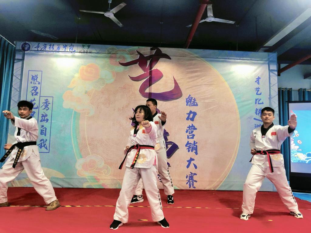 各类社团百花齐放,魅力营销竞争风流,此次活动也吸引到部分社团社员自发组队“艺”决高下。西洋乐器社代表队将拨动心弦的音符与令人陶醉的歌声交相融合,以《吉他弹唱串烧》燃爆全场;武道协会代表队以《跆拳有道》邀请观众走进武术世界,在一招一式、一脚一拳中感受跆拳道的独特魅力;世界上有一种语言,没有声音,在屏息凝神间却可感受其真谛。有一种动作,无需修饰,却能在双手间舞出它的绚丽,手语社代表队带来的手语表演——《遥远的歌》,在静默中洗涤心灵,此时无声胜有声。现场的同学们掌声不断、笑声不停,活动中的游戏互动环节将活动气氛拉至最高潮,同学们在构建的全新社交圈中主动交流、彼此融合,由陌生到熟悉只需一个笑容,携手营造和谐的校园氛围。