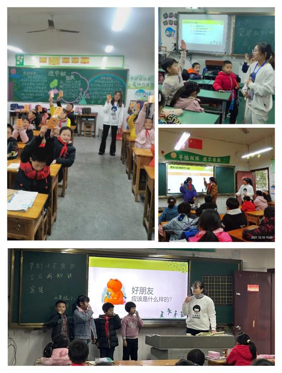 12月10日,通识教学部和花果书院合作的学业导师项目——守护青禾志愿项目,迎来了本轮疫情后的第一次外出活动。这次来到了草街镇的草街小学和金德凯顿幼儿园,给两所学校11个班,共计397位小朋友带去了防性侵安全教育课程。活动由杜增凤,刘静,黄思懿,张涛林,何露露,李静,彭星七位同学担任讲师。