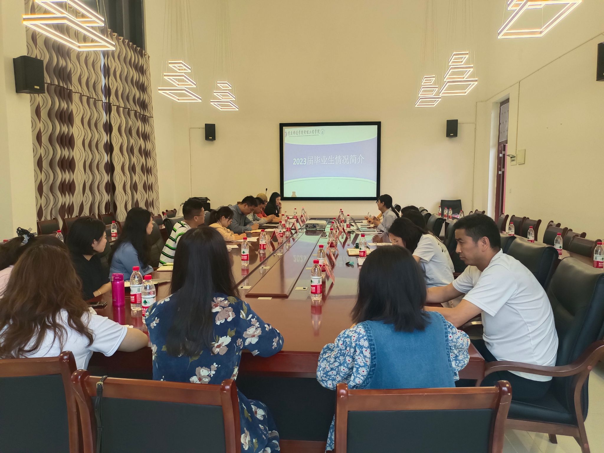 精准摸排,实施精细化服务。毕业班辅导员吴家家老师针对2023届毕业生目前的就业情况,展开了具体详实的分析。从就业情况、工作措施、工作困难、工作思路四个方面展开了具体讲解,并就普通本科和专升本两个类别的学生就业情况进行了具体分析。