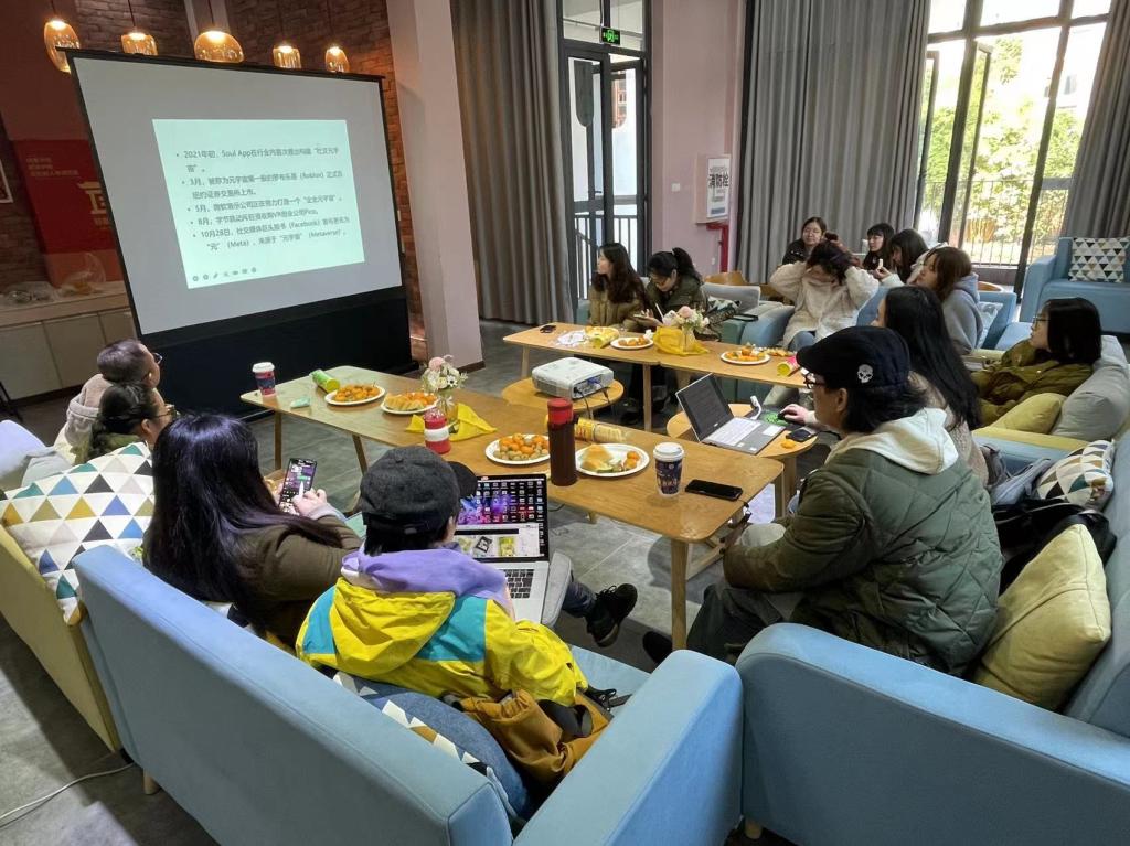 12月13日,“品牌数字化广告传播教学研修工作室”第三次主题沙龙于别都书院朋辈交流中心成功举办。本期沙龙主题为元宇宙,工作室主持人邓军红老师、工作室全体教师、学生助理参加了此次沙龙。