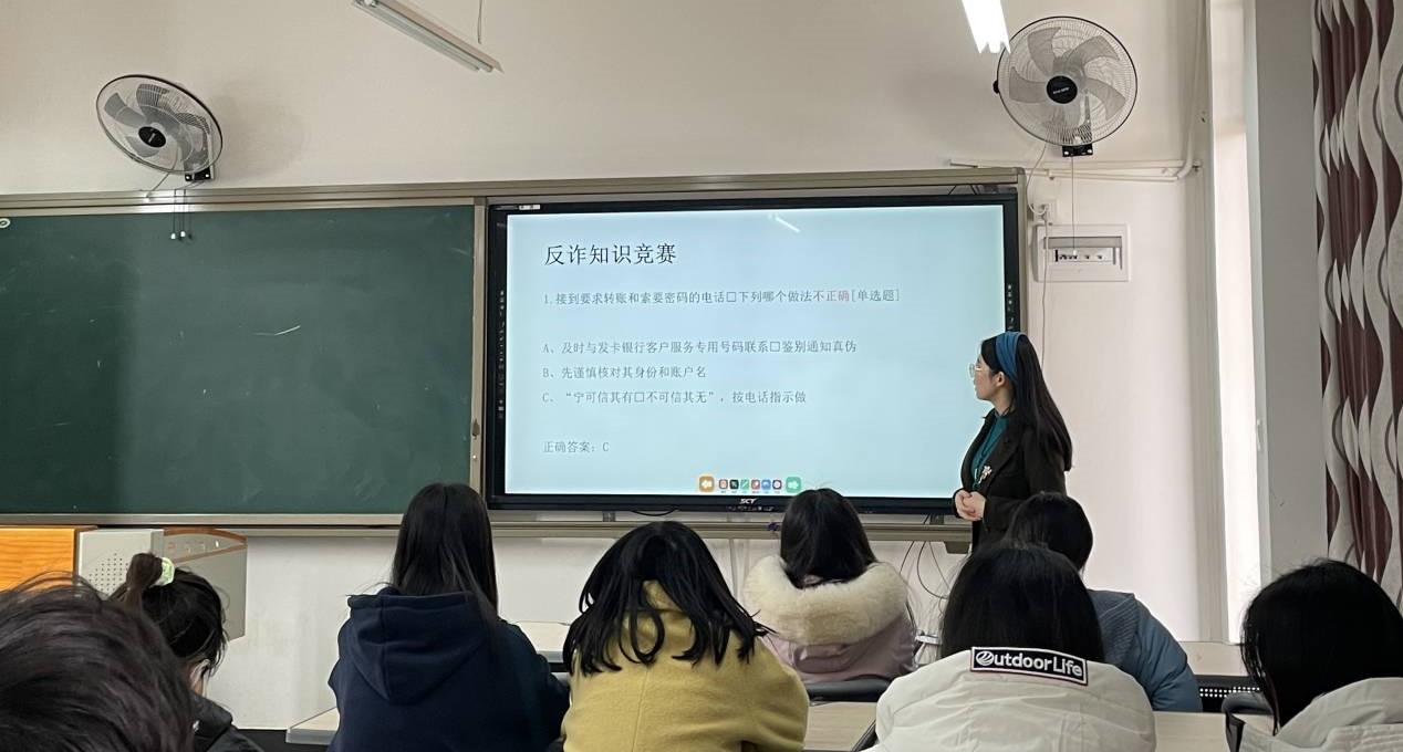 在反诈宣传环节结束后,同学们开始进行知识竞答,在此环节,同学们回答问题的热情高涨,并且能够较好地判断骗子的骗术,对诈骗类型与反诈方法有了进一步的认识。