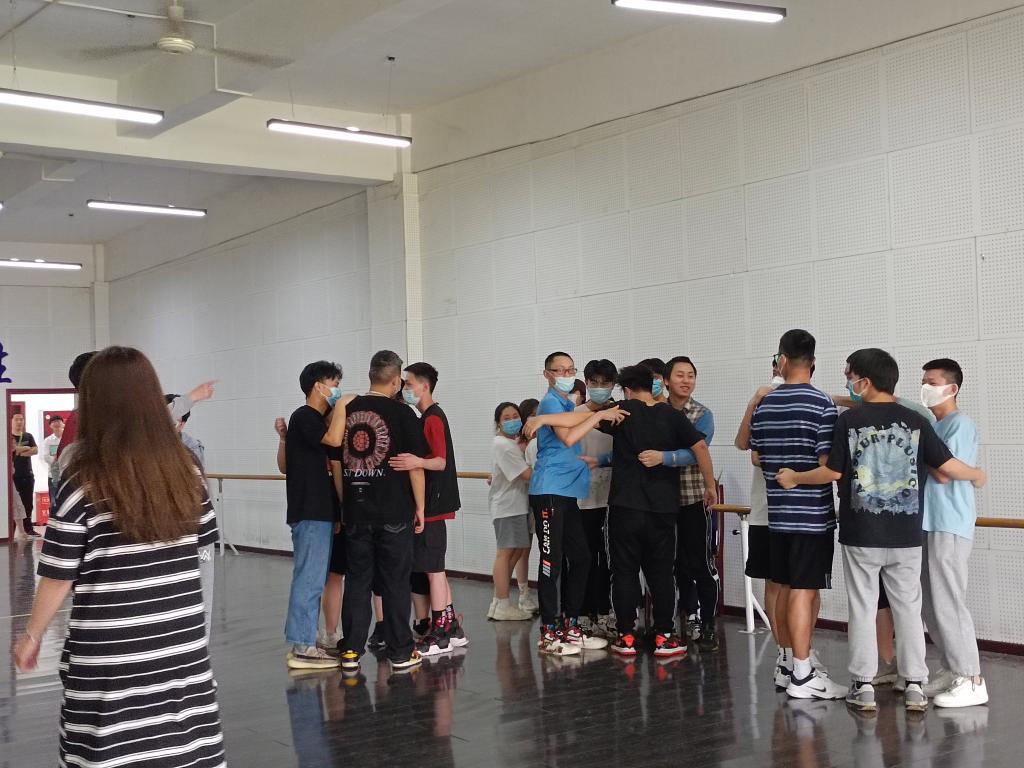 斗鸡游戏,将所有人分成4组,6个人一组,每组派两名队员与PK组进行PK,可自由选择1V1或2V1。最终获胜者,齐队伍获胜。在一次又一次的碰撞中,同学们感受到的不仅仅是输赢的悲欢和摔在地上的痛感,还有力量的碰撞和身体的温度。感受越多,感受力就会更好。