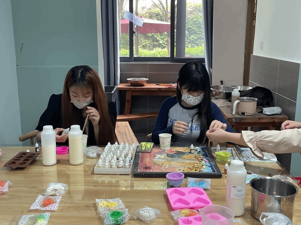 今天老师带我们去了百匠工坊做了很多东西!第一次做手工皂,都在查教程在慢慢摸索着做,很团结,做出来的手工皂很可爱也很成功!!!!还动手做了粘土!老师很可爱也很耐心,这种活动太有意思啦,今天很开心,希望以后机会能再去动手做做!