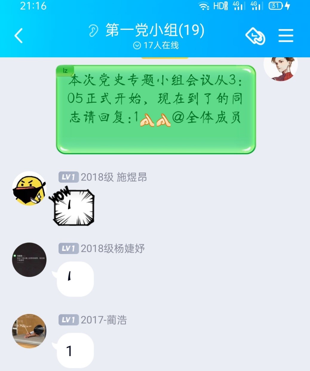 历史像一个历经沧桑的长者,当下貌不惊人、古井不波,当年惊若天人、纵横捭阖。第一党小组的各位党员同志在廖宇航同志的带领下集中学习《论中国共产党历史》、《中国共产党简史》部分内容,通过组织小组党员同志说党史知识、讲党史故事,切实做到学史明理、学史增信、学史崇德、学史力行。作为新时代的党员同志,要以奋斗之姿向党的100周年华诞献礼,让初心使命、革命薪火代代相传。