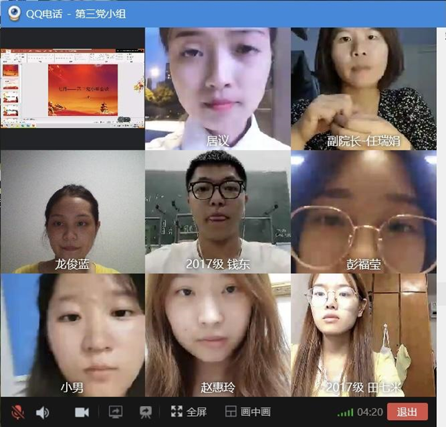百年征程波澜壮阔,百年初心历久弥坚。为深入学习贯彻习近平总书记“七一”重要讲话精神,扎实推进党史学习教育走深走实,7月22日,数字经济与信息管理学院学生党支部以“以史为鉴不忘初心,担当奋进开创未来”为主题开展了线上党史学习教育会议,参与本次线上会议有我院学生党支部书记任瑞娟老师、全体教师党员及学生党员。