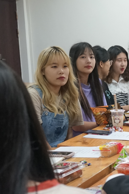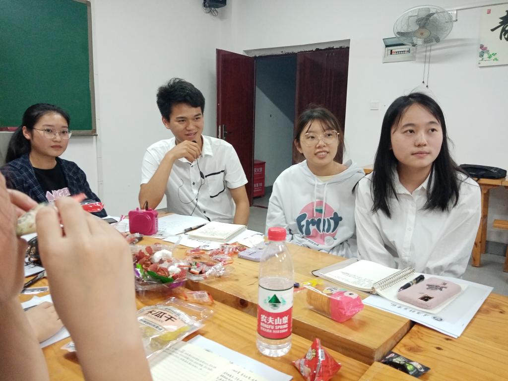 今日这种别开生面的“上课”形式让大家惊喜十足,分享的顺序是按照座位的顺序来,大家手上拿着自己最终的期末考查作业,围在一起,吃着零食,谈自己的期末小说的创作历程以及自己这一学期的收获。