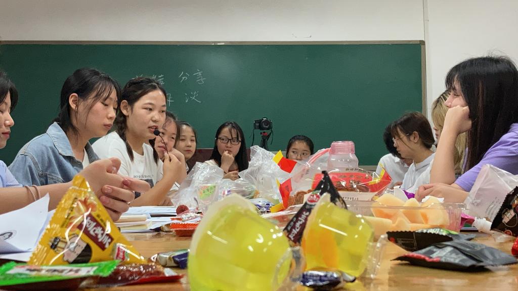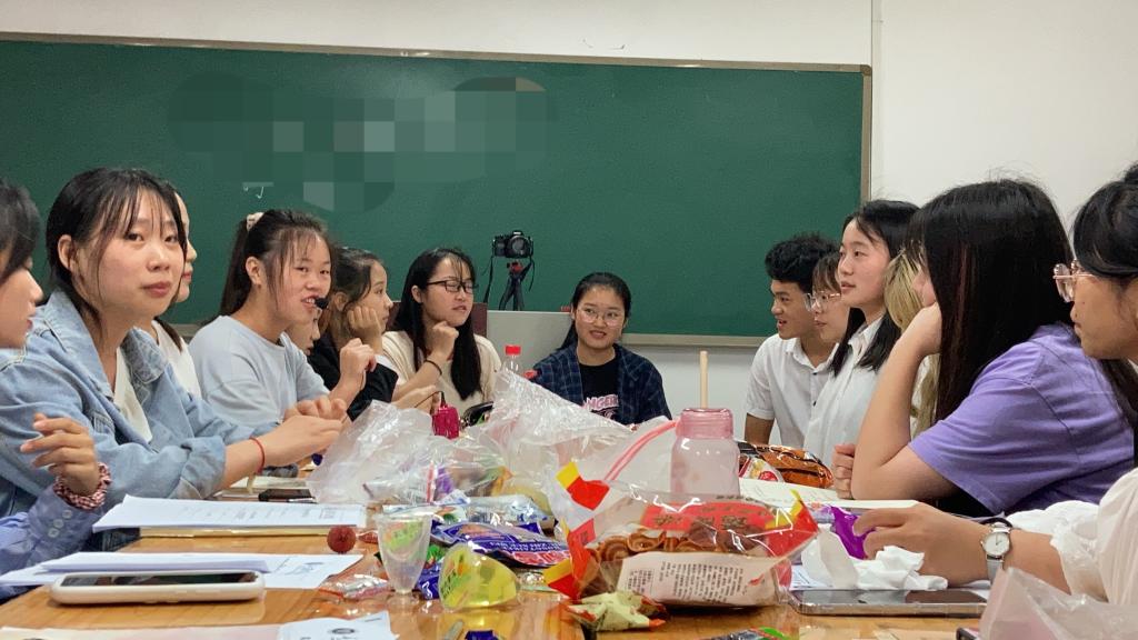 在这个特别的“课堂”中,温情时刻也会萌发,在这样面对面的交谈之中,大家放下了平时上课的紧张感,也不用苦思烦恼这节课的随堂作业应该怎么完成,大家吃吃水果,嗑嗑瓜子,传递着杨梅,这样一来二去,还颇有古人曲水流觞的韵味,在这样轻松的氛围之下,大家也打开了自己的内心世界,谈起了自己内心最柔软的情感。