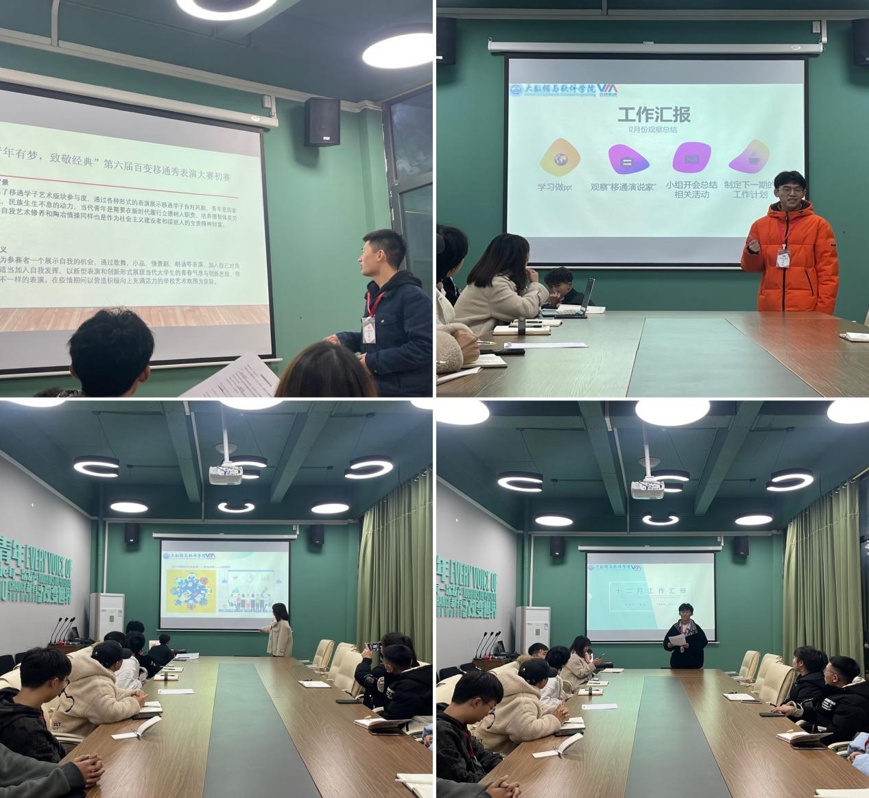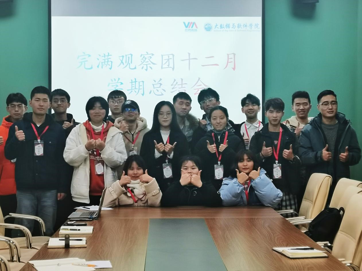 临近期末,完满教育活动已接近尾声,移通学子忙着复习,大数据与软件学院完满教育观察团的工作仍在稳步进行,以持续专注提升完满教育师生满意度为根本,注重以创新驱动、评价驱动为主要抓手,全面夯实完满教育质量提升,积极推动完满教育极致化发展。大数据与软件学院完满教育观察团于12月24日18:00—19:50在花果书院201会议室展开了12月工作总结评析会,参与本次总结评析会的成员有完满观察团指导老师彭崇清老师、徐瑞成老师以及完满教育观察团全体成员。