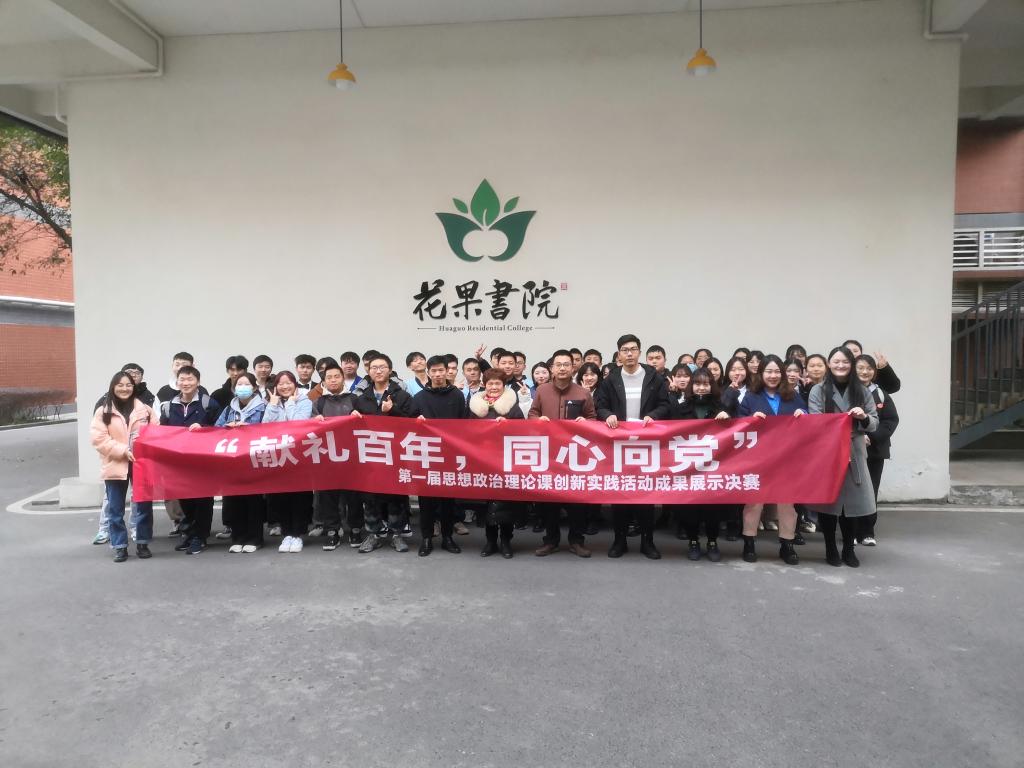 思政教学部政治理论教研室结合学校办学特点,携手花果书院将学习融入学生的日常生活和技能实践之中,于12月22日下午3点30分成功举办“献礼百年,同心向党”——第一届思想政治理论课创新实践活动成果展决赛,来自花果书院、思政教学部的胡方洋、杨勇、金光美、李阳、梅月红五位老师担任了此次比赛评委。