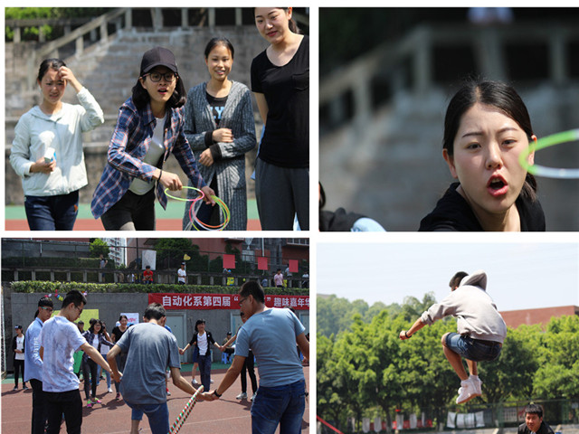 很快就迎来了大家期待已久的“不一样的接力”项目,一场速度与脑力的碰撞就此展开,过程中参赛队员们相互交流配合。其中最紧张的莫过于算24点了,有的同学思维敏捷,很快就算了出来,引来同学们的一片惊呼;有的同学却紧张迟迟得不出答案,但同学们一直在旁给他加油鼓劲。其他的团体赛紧接着也如火如荼的展开了。在所有的参赛团队中,有一支队伍显得格外引人注目,那就是有自动化系辅导员老师和学生会干部们组成的队伍,他们积极参与到各个项目中,希望通过自己的带动,让同学们走出网络,走出寝室,投身体育活动中,在收获快乐的同时也强健了体魄。“嘟!”,哨声代表着激情,不论是自己,还是自己的队友在奋战,每个人都在欢呼,在散发着属于自己的那份激情!经过一上午的精彩角逐以及每个人的倾情奉献,趣味嘉年华活动体现出了这次活动想要给予同学们的奋勇向前、团结合作、收获快乐的重要价值。