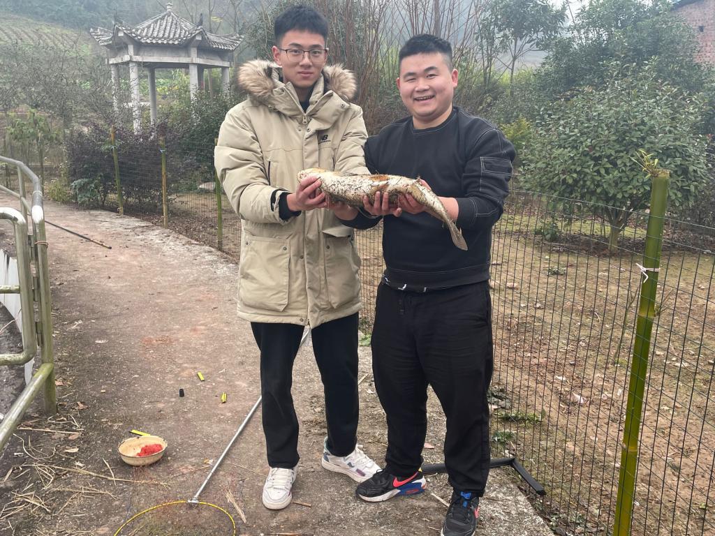 一切准备就绪,同学们摆上了穿好的烤串,将提前准备好的调料刷在串上,赋予它属于烧烤的味道。不断给烤串翻面,浓烟飘散,香味也随之飘远。烤烧烤的同学将烤熟的烤串给垂钓的同学送过去,赋予了烤串团结和爱的味道,增进同学之间的友爱之情。每个同学都有体验烧烤和垂钓的机会,都在这个过程中感受到其乐融融的快乐。快来!快来!鱼儿上钩啦!好大一条!一位垂钓的同学兴奋的吼道。同学们一窝蜂的跑到鱼塘边,汤世才老师和同学们一起将这一条大鱼一同捞起来。当同学们吃着自己动手烤的食物时,我们不只是尝到了美味,更多的是一种体验感,感受到异科导师团队的凝聚,感受到异科导师团队的温度与友爱;当同学们钓起鱼儿时,更多的是一种成就感,是自己坚持、耐心等待后的收获。
