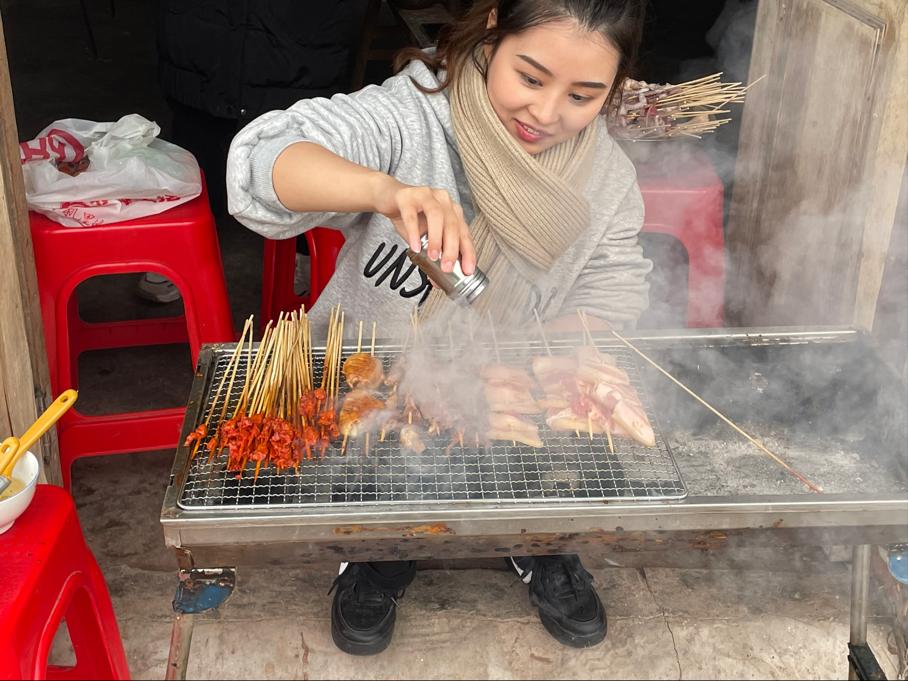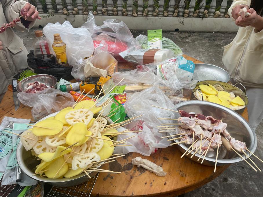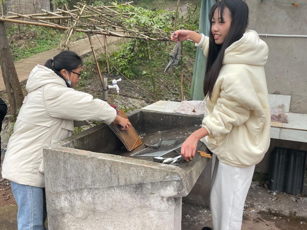 寒冷萧瑟的冬日清晨,怀揣着火热激动的心情,同学们准时到达学校校门口。拍完合照后,汤世才老师带领同学们购买食材。我要“豆干”、我要“苕皮”、我要“鸡翅”……同学们你一句我一句的闹着,好不热闹!买完食材后,经过颠簸,来到了同学们垂钓烧烤的目的地;迎面而来的是乡村新鲜的空气,同学们深呼吸,宁心静神的感受着乡土气息,放空身心。看到淳朴的爷爷奶奶在搬运砍掉的竹子,同学们主动上前帮忙,将移通志愿的奉献与爱在实践活动中生动诠释。