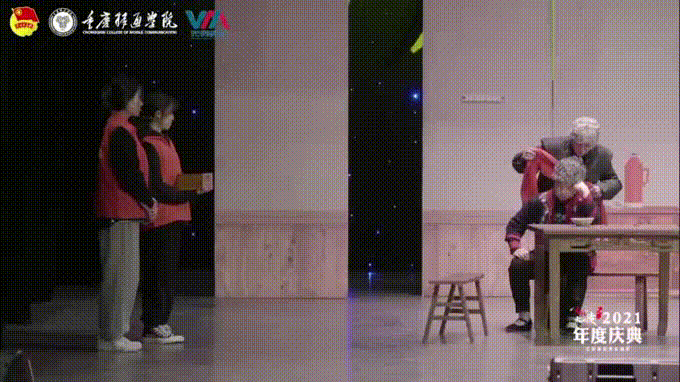 又或是心灵盛宴:綦江校区校级学生组织精心编排,将多种表演形式汇于舞台剧,绝佳呈现中印完满路上薪火初起,焕新青春模样;满满志愿情,绘流光画卷,大学生话剧团携音诗画倾情温暖晚会,每句话语都含有一份感动,以不悔初心涌冬日暖意;将完满生活融入情景演绎,舞台灯光明暗中不断转场,二级学院学生组织以情景剧再现学生组织工作者在完满阵线上的欣喜相逢。