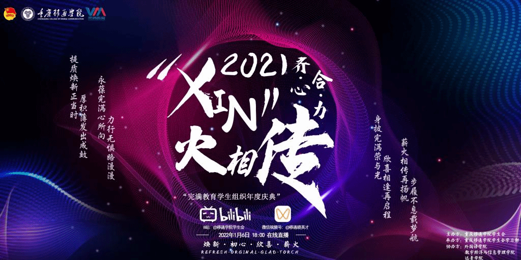 结合疫情实际情况,1月6日18:00,以“XIN”火相传为主题的完满教育学生组织年度庆典通过视频号、B站同频直播放送。