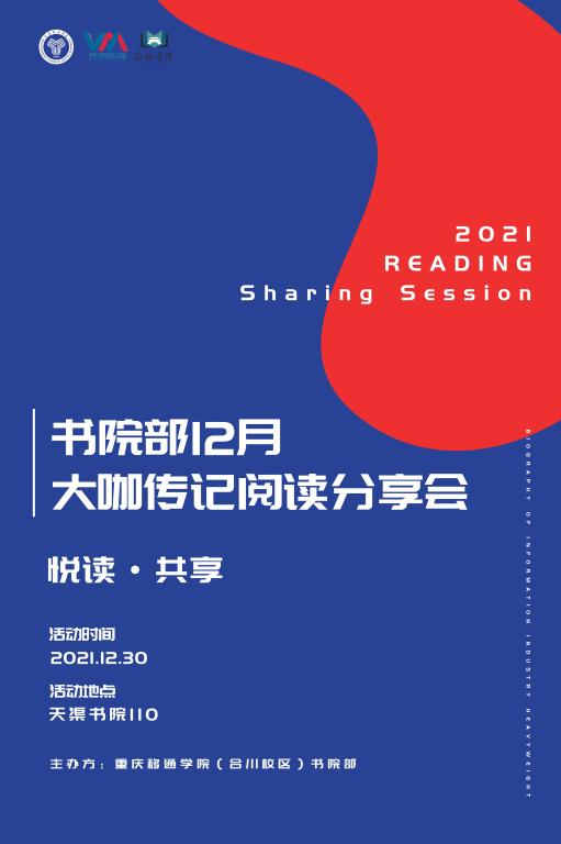阅读是一个学习的过程,一本书是一个故事,一个故事叙说一段人生,一段人生折射一个世界。为更好的实施“信息产业大咖传记阅读计划”,持续营造良好阅读氛围,引导师生保持良好的阅读习惯,发挥书院教师的思想引领作用,同时,鼓励全体师生在阅读过程中培养商科意识, 12月30日下午14:30,书院部30余名教师携10余名学生好书推荐官于天渠书院110参与了由廊桥书院承办的书院部12月信息产业大咖传记阅读分享会。