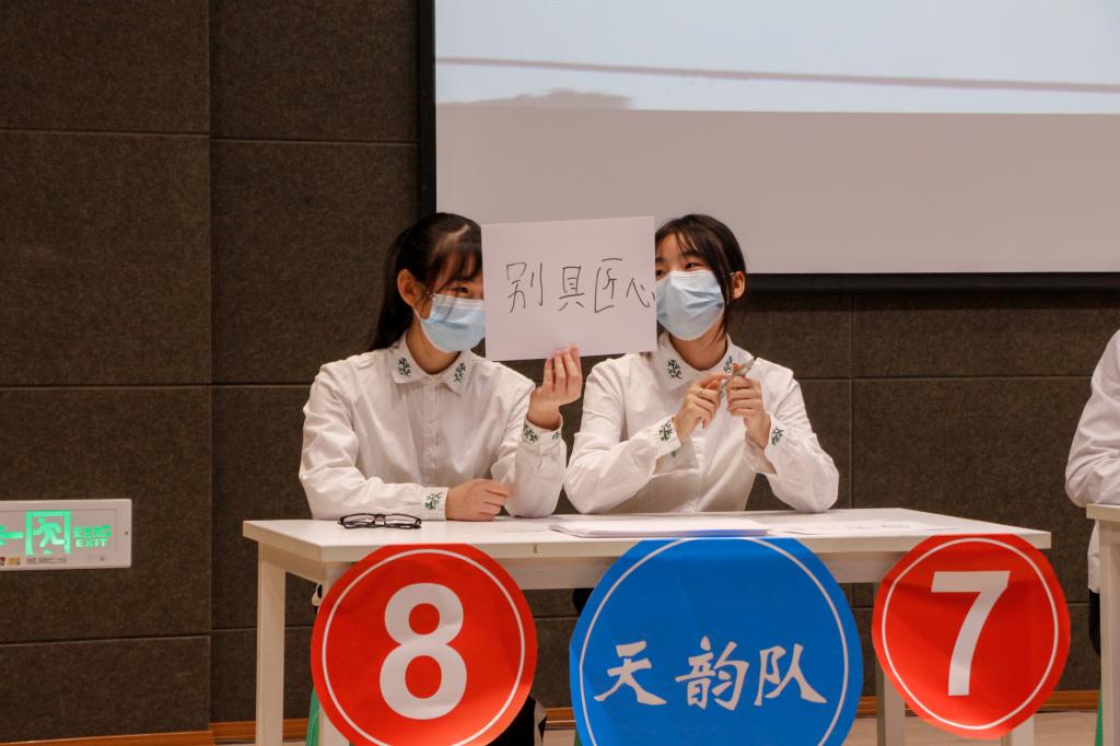 “横平竖直皆风骨,撇捺飞扬是血脉”,为加强同学们对汉字偏旁的理解和运用,呼吁同学们重拾对汉字文化的重视,比赛在第二轮设计了“奇妙相连”环节,选手需观察大屏幕上面投屏出来的各类汉字偏旁,然后将各类偏旁部首组成汉字及词语。“山河无恙“队与“天韵”队不分伯仲,平分秋色,最后“天韵”队以五分的优势获得比赛一等奖,“山河无恙”队的6号选手张宇航同学鏖战四方以个人得分第一的佳绩斩获个人一等奖。
