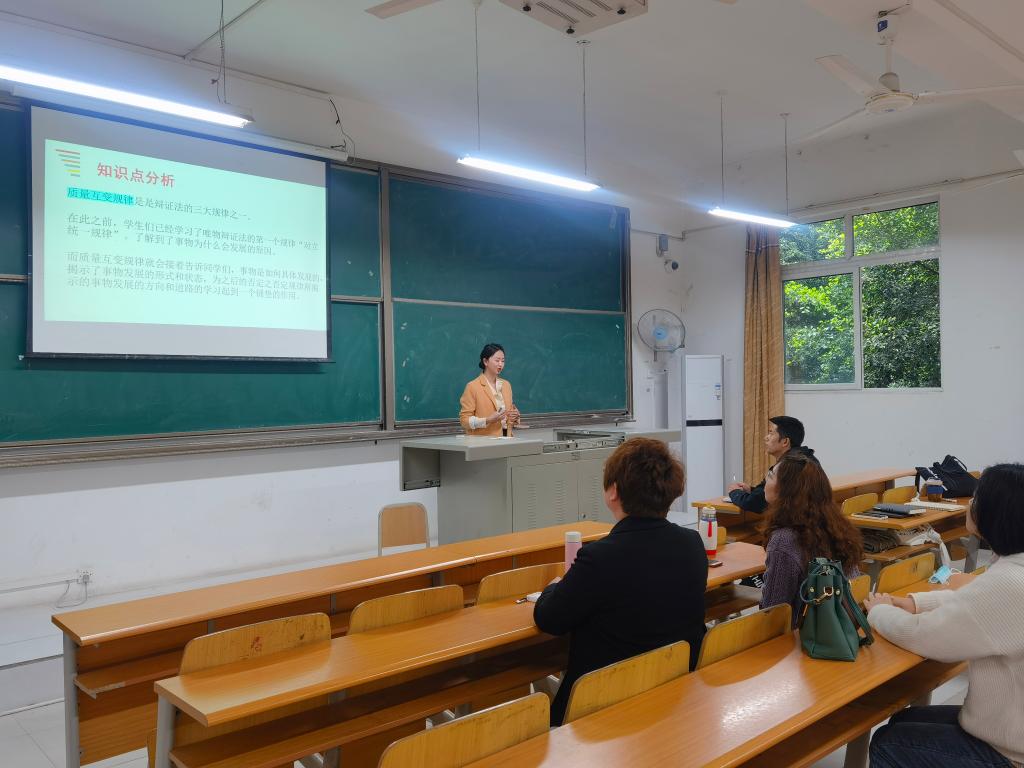 接着,在听完新进教师的说课之后,众多老教师纷纷提出了自己的看法与建议。马克思主义基本原理概论课程负责人的宋珊建议,应该在以上说课内容的基础之上增加学情分析,以便更好地掌握教学目标与开展教学内容。张铭瑶的“老带新”指导老师李潇潇建议,在教学内容的实施开展中应该适当地穿插案例分析,案例不能过于集中也不能过于分散,以达到深化理论的目的。最后,众多老师都针对新教师说课出现的问题,做了悉心的指导和建议,为新老师挖掘亮点、解决疑难。