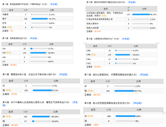 3月25日,我校蓝天应急救助志愿服务专项支队举办以“急救小知识,在线等你来”为主题的急救知识微竞赛活动,活动累计参与人数达160人,收获近百份有效答卷。