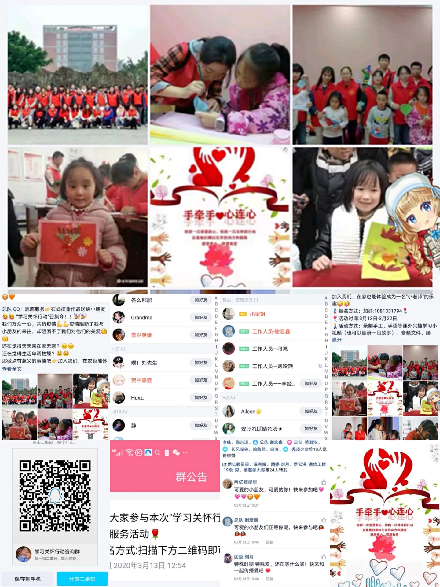 隔离拉开了距离,但是爱总让人一次次靠近,疫情当前,为提高我校志愿服务的辐射范围,继续帮助孩子去学习,重庆邮电大学移通学院青年志愿者联合会与艺传青协协力,提前与相关社区经理联系并调查了解小朋友的兴趣爱好,2020年3月13日,以关爱儿童,传递温暖为主题的“学习关怀行动”在线上火热的开展。