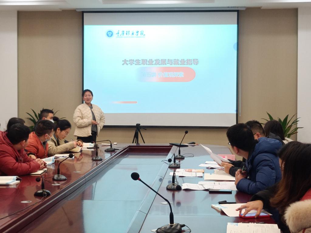 随后由郭淼老师和温子慧老师进行了经验分享,他们分别分享了自己教授就业课程和创业课程的感受和心得,就业课程郭老师分享要了解开展就业课程的意义与目的,同时要结合学生的兴趣,调动学生上课的积极性;而创业课程温老师主要从自己在綦江校区授课的经历来展开分享,她强调创业我们上课要注重培养学生养成创新思维,营造愉悦的课堂氛围有利于学生更好地进行学习。