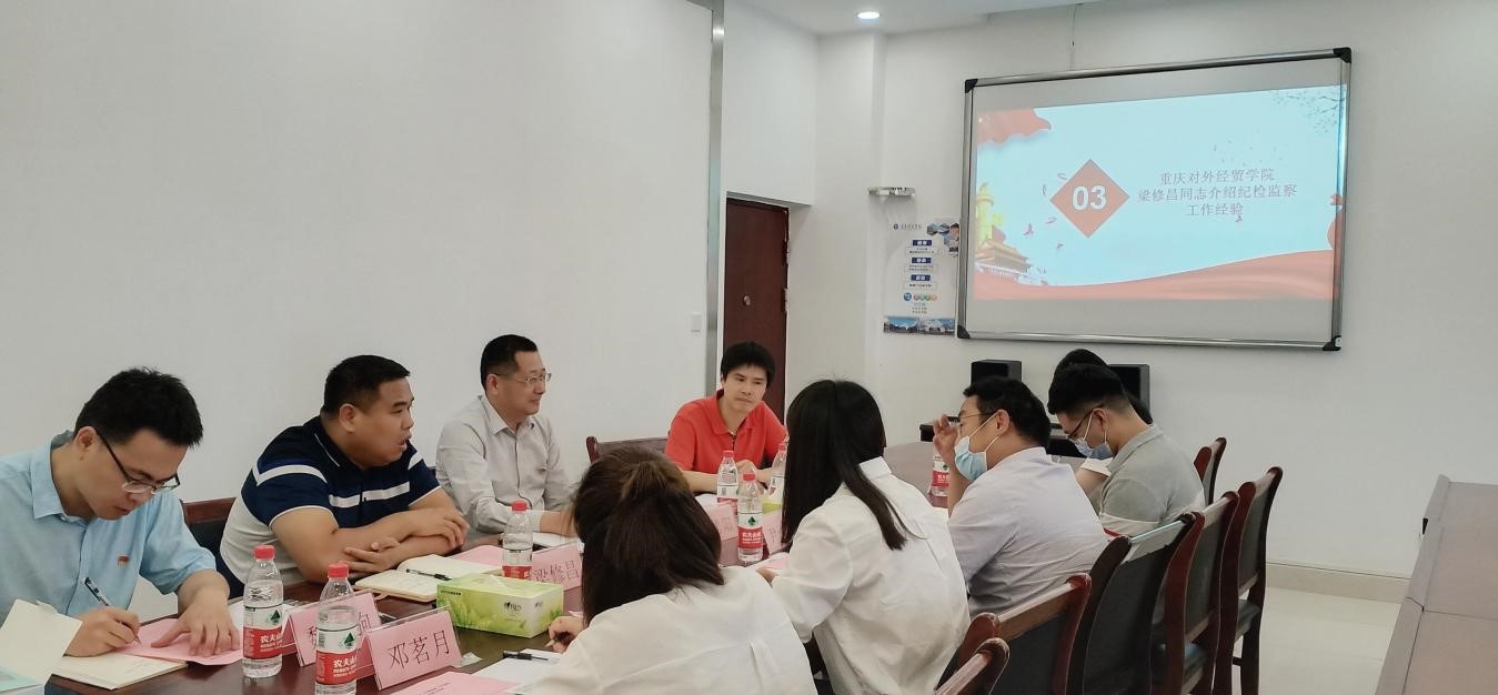 为进一步夯实纪检监察工作基础,拓宽工作思路,寻求三校纪检监察工作的共性与共识,5月10日下午16:00学校纪检监察室联合重庆工商大学派斯学院、重庆对外经贸学院开展了“三校”纪检监察工作系统交流会。移通学院党委委员、纪委书记尹浩亮,纪委委员李巧,重庆工商大学派斯学院党委副书记、纪委书记、副校长陈勇阳,统战部副部长、纪委办副主任、工会副主席魏名驹,重庆对外经贸学院党委委员、组织部部长、统战部部长梁修昌,纪委副书记兼机关党总支书记尹翔以及其他教师代表参加了此次交流活动。会议由学校纪委委员李巧同志主持,各参会人员积极交流发言,氛围融洽。