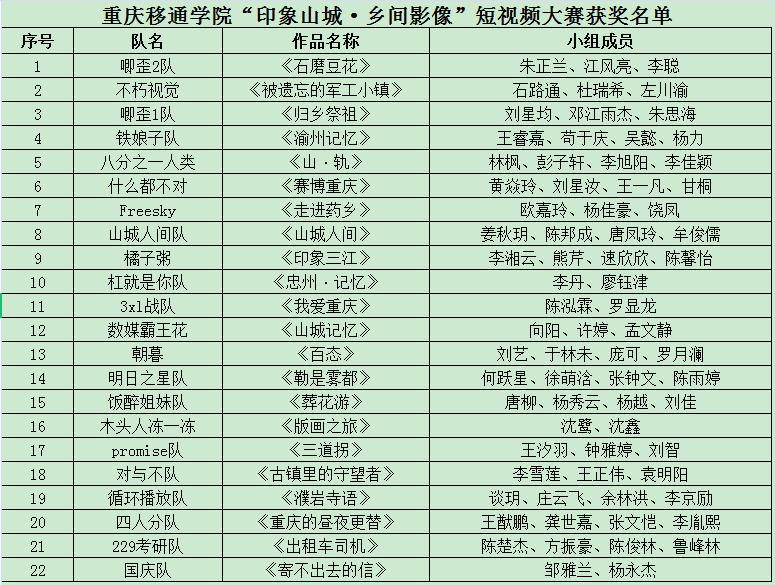 在“四位一体双院制”培养模式下,更好的促进完满教育与专业教育融合育人。历时三个月的“印象山城·乡间影像”短视频大赛顺利完成。作为一项校内大型的、专业型赛事,本次短视频大赛270余名师生共同参与其中。
