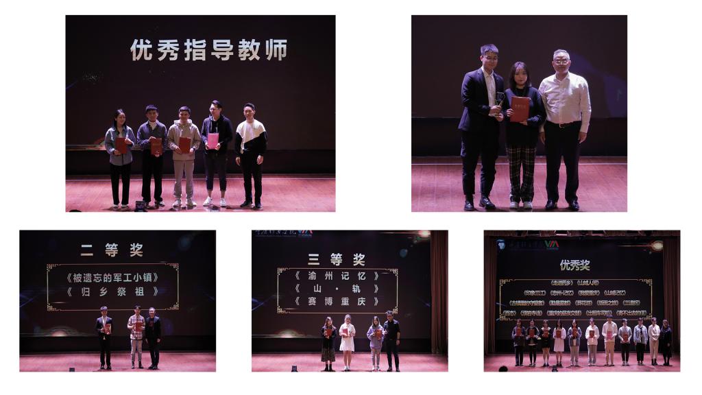 自2021年1月15日活动启动以来,在校团委,学院以及各赞助单位的大力支持下,本次比赛最终评选出一等奖1名,二等奖2名,三等奖3名以及优秀奖16名,在本次颁奖典礼中进行嘉奖。《石磨豆花》用镜头记录下重庆特色美食——豆花的生产制作过程,在光影艺术之间呈现劳动人民的智慧结晶,捕捉豆花的豆香。长途跋涉,几经波折,《归乡祭祖》在呈现山城重庆民俗文化特质,也是同学们对专业素养的追求与执着。山和水合而成的地域、网红打卡地,《赛博重庆》用镜头记录着重庆的“魔幻”特质。