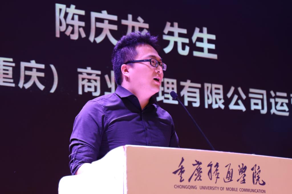 车友趣(重庆)商业管理有限公司运营总监陈庆龙先生,在致辞中从技术更迭的周期长短分享了当下时代的创新特征,引导同学们保持对新事物、新技术手段的关注与热情,充分利用新事物、新技术实现新发展。