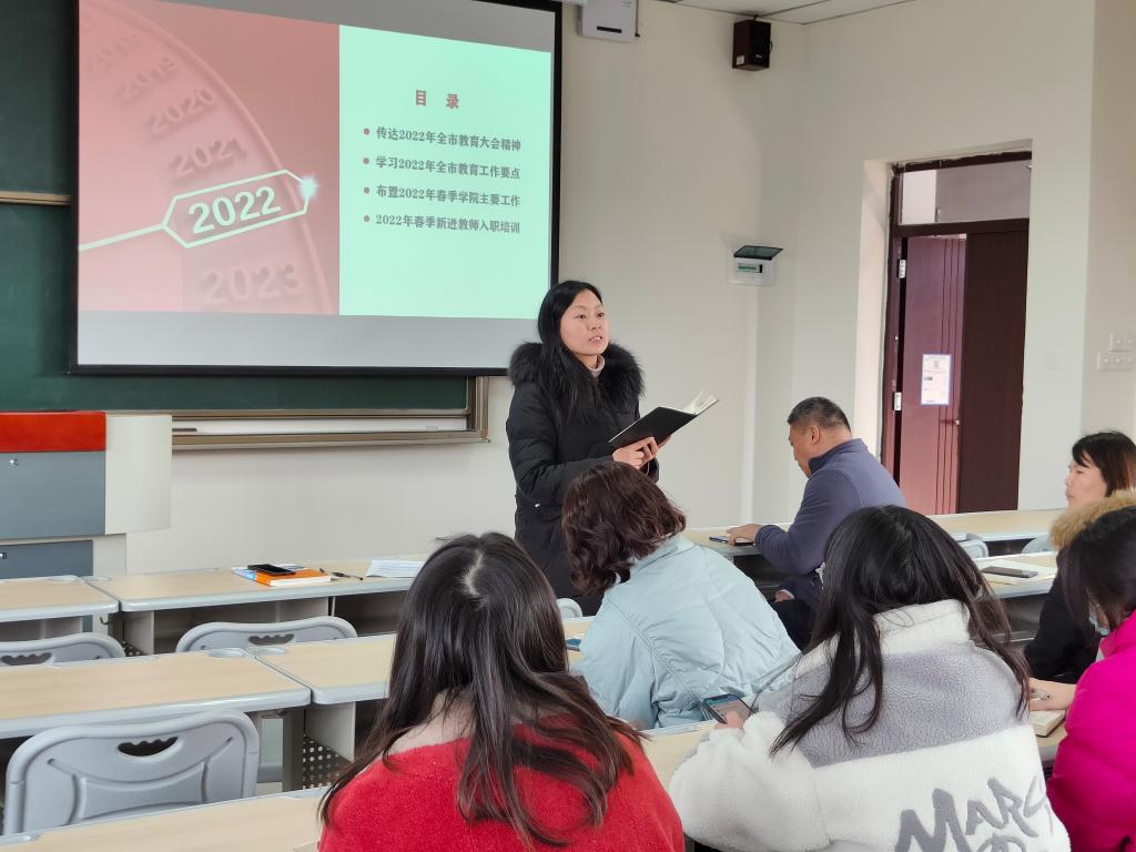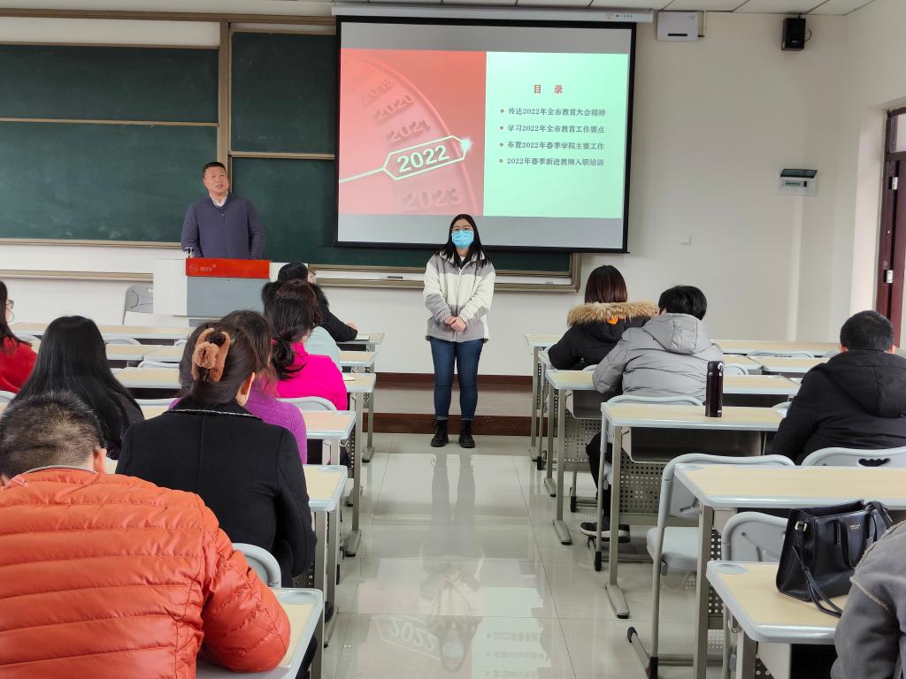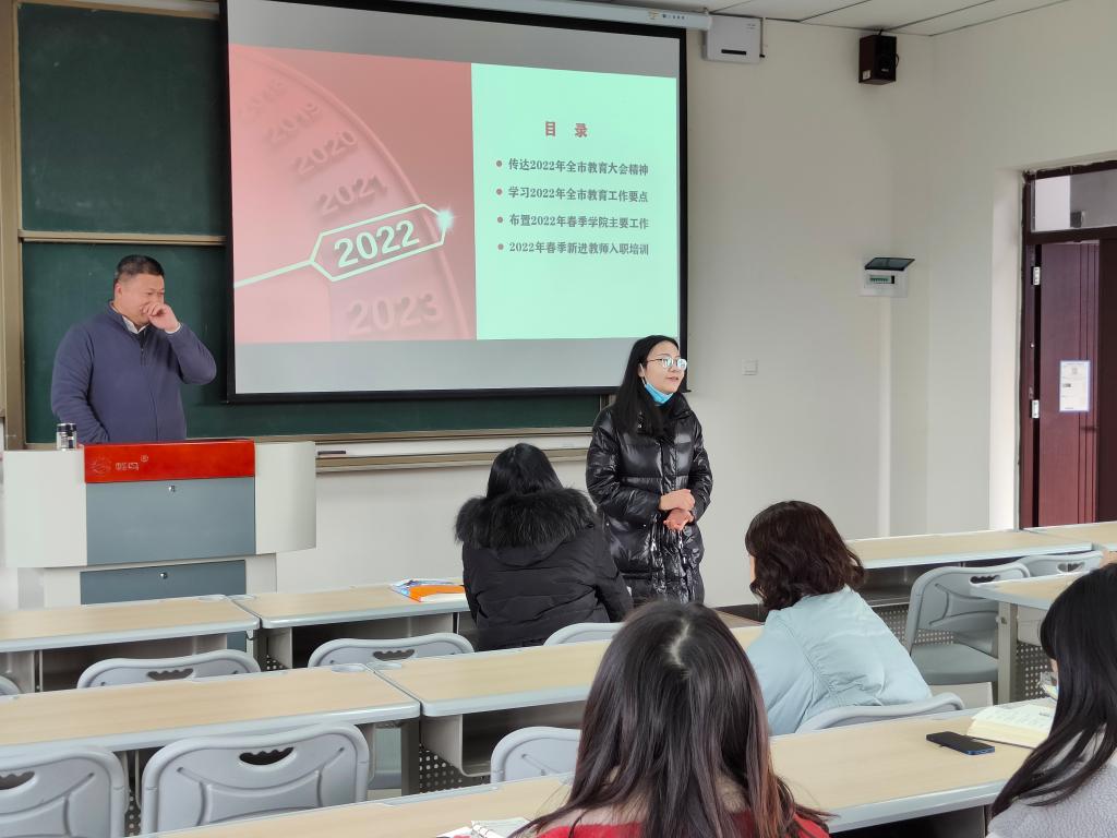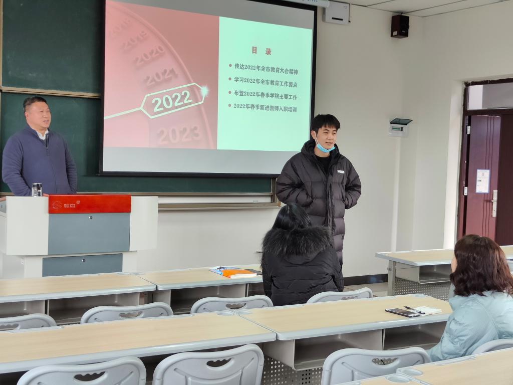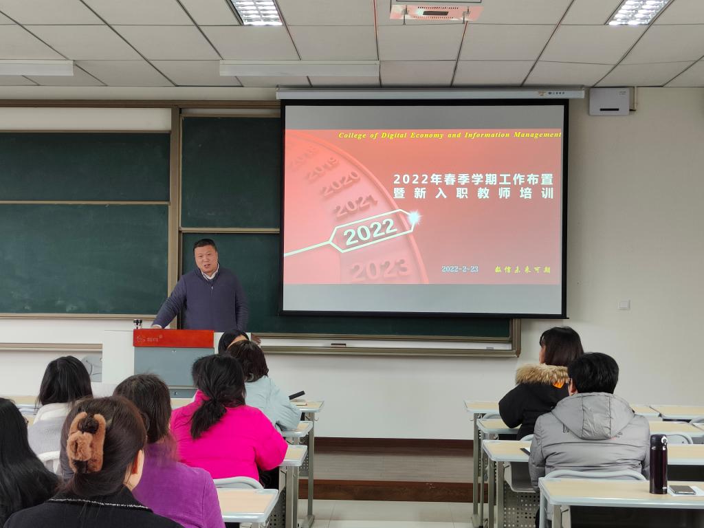 为深入贯彻落实党的十九大精神,落实新时代全国高等学校本科教育工作会议要求,同时结合疫情防范,切实保障在校学生与教职工的人身安全,2月23日下午16时,数字经济与信息管理学院于双栀书院403教室开展了新学期的第一次会议。本次会议由潘显兵院长主持,从传达2022年全市教育大会精神到布置春季学院主要工作,再到对2022年春季新进教师入职培训,有条不紊地开展新学期学院工作。