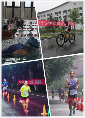 铁人三项运动包含:游泳、骑车、跑步三项内容,拥有“不畏艰苦、顽强拼搏、团结奋进”的精神涵义。本次比赛根据学校实际情况设立:竞技组、体验组、铁三角接力三个项目,以满足不同层次同学们的需求。周末降温阵雨急促,在高强度的竞赛基础上对参赛健儿们提出了更高的能力要求和技能考验。比赛激烈紧凑,“不畏艰苦、顽强拼搏”成为选手的力量源泉,摔车后丝毫没有在意擦伤状况,毫不犹豫的再次踩上脚踏板继续投入到自行车竞赛中;“团结奋进”精神在“铁三角接力赛”中得到真实体现,三位选手根据自我特长依次接力完成竞赛项目,不断学会自我思考与控制、成员沟通交流及团队协作,不断促进自我进步和成长。