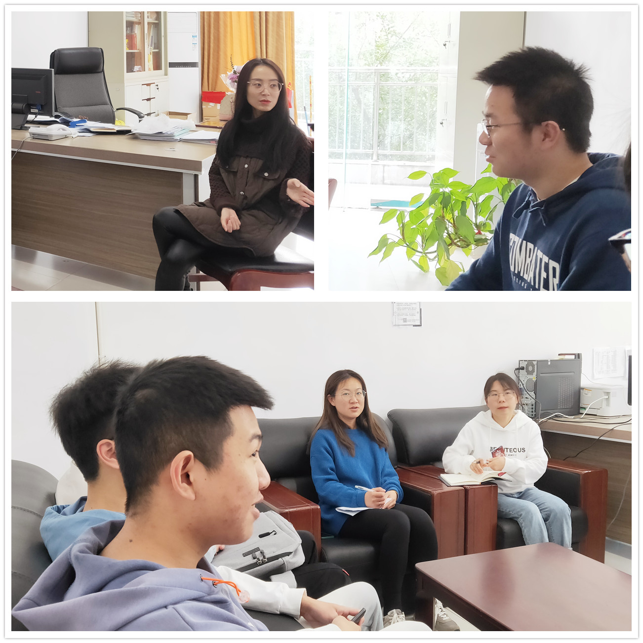 为更好地了解学生的思想、生活和学习情况,加强与学生之间的沟通交流,3月9日上午,通信与信息工程学院在四教三楼办公室开展了院长接待日活动,院长李文娟、辅导员老师李林燕和王艺接待了2020级学生代表。针对同学们提出的各种问题和学习方面的困惑,李院长耐心细致地逐一进行了解答。