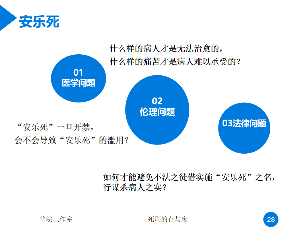 随着解读的深入,老师讲述的案件也更加的复杂。1986年,王明成为身患绝症的母亲实施“安乐死”,并因此被公诉机关以故意杀人罪提起公诉,后因法院宣布无罪而释放。17年后的2003年,王明成患胃癌且到晚期,不堪病痛折磨的他向医院要求“安乐死”,但被拒绝。在中国“安乐死”第一案中,医学问题、伦理问题和法律问题混合成一团乱麻,在法学界、民众间引发了一波又一波的探讨与争论:安乐死是否应该被允许?从根本上说,安乐死不是目的,而是死亡方式。“安乐死”的看法一直受到传统道德观念的约束,民众对此的看法、观念各有不一。“安乐死是否应当被允许?”这一深刻又敏感的问题成为了本次法律实务研习的思考题,李老师期待在下一次活动中与同学们进行深入的探讨。