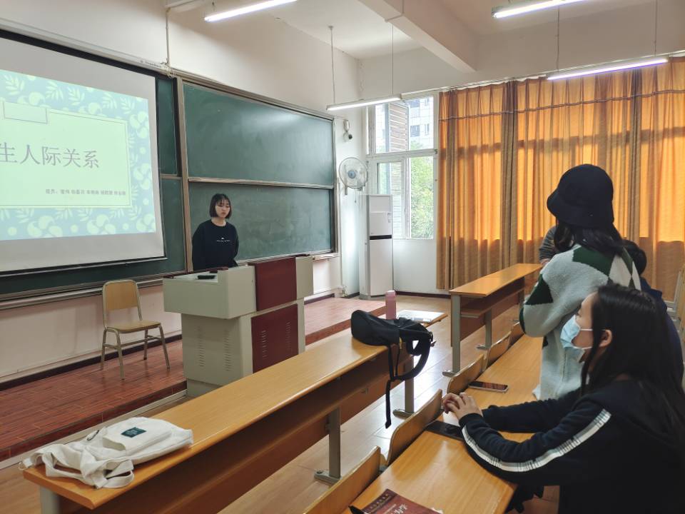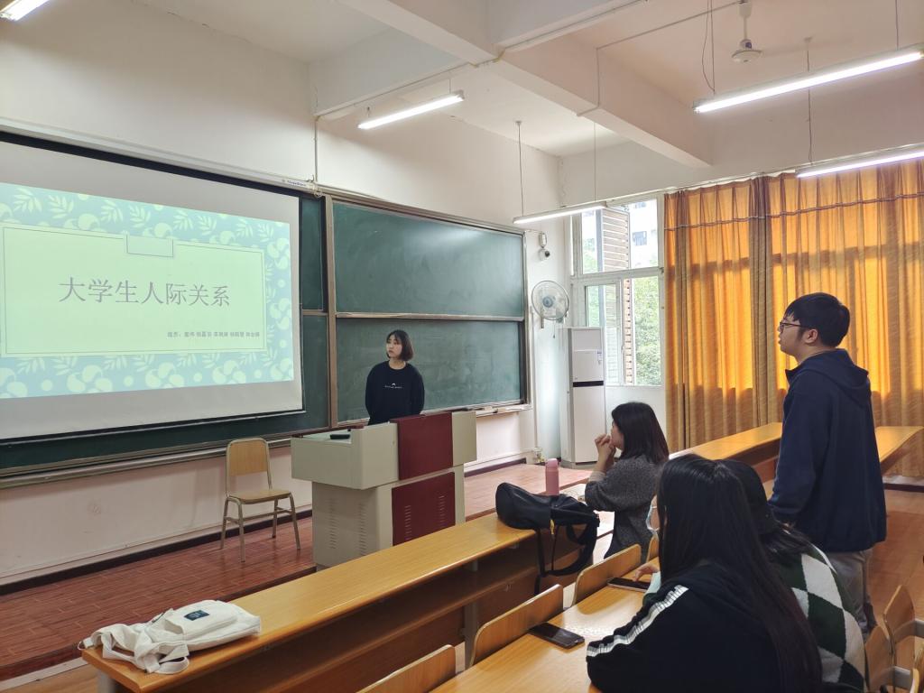 杨昌羽同学分享了小组对大学生人际关系这一话题的观点。从人际关系对于大学生的重要性,到如何建立良好的人际关系,以及怎样处理人际关系。大学生正处于人生成长的一个重要阶段,人际交往是其学习和生活过程中必不可少的行为之一。大学生通过人际交往,可以交流情感,寻求理解,建立友谊,切磋学问,探讨人生。人际交往甚至在某种程度上直接影响着大学生的心理健康。