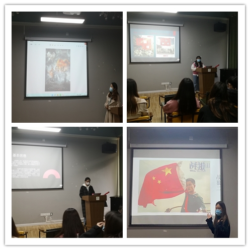活动伊始,赖老师为大家分享了一段视频,画面展示了近年来红色 电影市场获得的一项项卓越成绩,一个个关键词浓缩着中国电影人的心血和付出。到场的同学们皆为电影这种大众流行文化的爱好者,纷纷表示感同身受,难掩心中的激动之情。紧接着,唐老师带领同学们分享了自己心中难忘的红色 电影,带来了《1921》《八佰》《革命者》《英雄儿女》《长津湖》等一部部电影佳作的观后感。这些电影描述了伟大的中国共产党波澜壮阔的革命历程,再现了那些为党的事业英勇奋斗的共产党人形象。当记忆的纽带再次链接起那段峥嵘岁月时,厚植于脑海里的经典电影便一一浮现,那些鲜活的、勾起人们情感共鸣的台词经典使人血脉喷张。通过同学们深情并茂的分享和充分的交流,在座每一个人对红色 电影的认知得到再次升华,感悟到了红色力量蕴含的强大精神动力,活动在热烈的氛围中圆满结束。