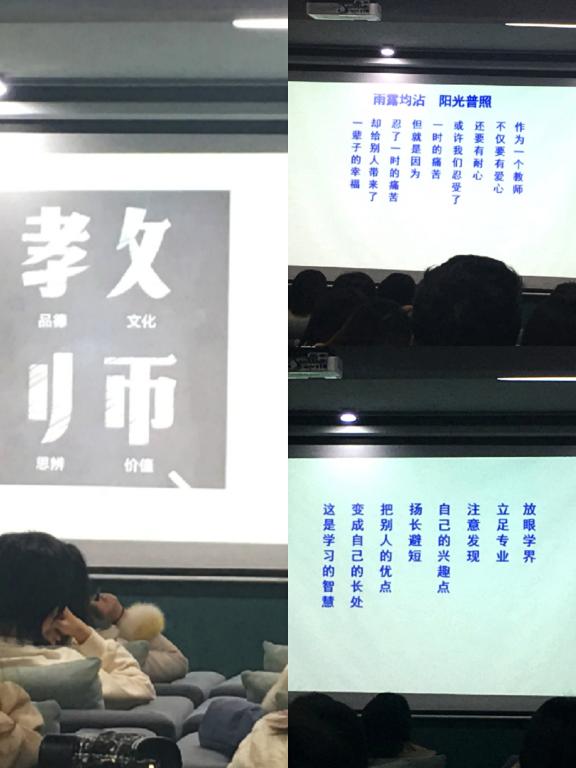 首先王教授把“教师”这两个字形象地地拆解为“品德高尚,文化深厚,善思辨,明价值”,并提到“大学之道,在明明德”,让我们明白大学的道理在于彰显人人本有自身所具备的光明德行,再推己及人,使人人都能去除污染而自新,而且精益求精,做到最完善的地步并且保持不变。这就需要教师从自身做起,所谓“师者,人之模范也”,然后才能为学生的成长指引方向。