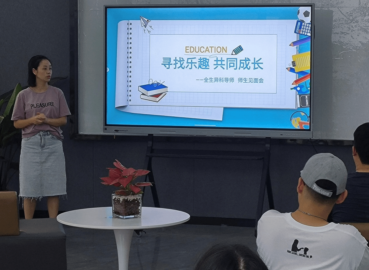为了拉近同学之间、师生之间的距离,增加老师与同学们的互相了解,也为了让同学们对本专业以及今后的大学生活有初步认识,邓娟异科导师小组全体成员于4月21日中午十二点半,在南湖书院中德创意工坊召开了以“寻找乐趣,共同成长”为主题的异科导师见面会。邓娟老师主持本次活动,参与本次活动的33位同学来自大数据与计算机科学学院2022级各个专业。