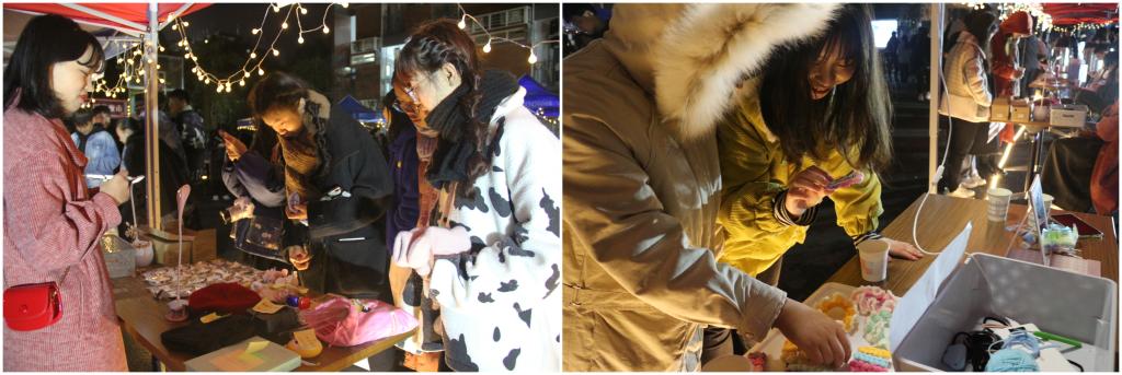 在共享经济深入人心的当下,闲置物品的交换让大家体验到共享的乐趣。活动前期,花果书院通过线上线下多个渠道进行了广泛的宣传,征集到了近20余位“摊主”,经过了工作人员的审核后,手作毛绒玩具、镯子、汉服鞋、书籍、衣服等物品在夜市中和大家见面,“生意”火爆,各个摊位都排起了长龙。花果书院的共享空间也在这次夜市闲置物交换中得到了推广和肯定。同学们还在摊位中惊喜地发现了院系辅导员老师们和团委老师们的身影,在学生们的带动下,他们也参与到了“闲鱼”大军中。