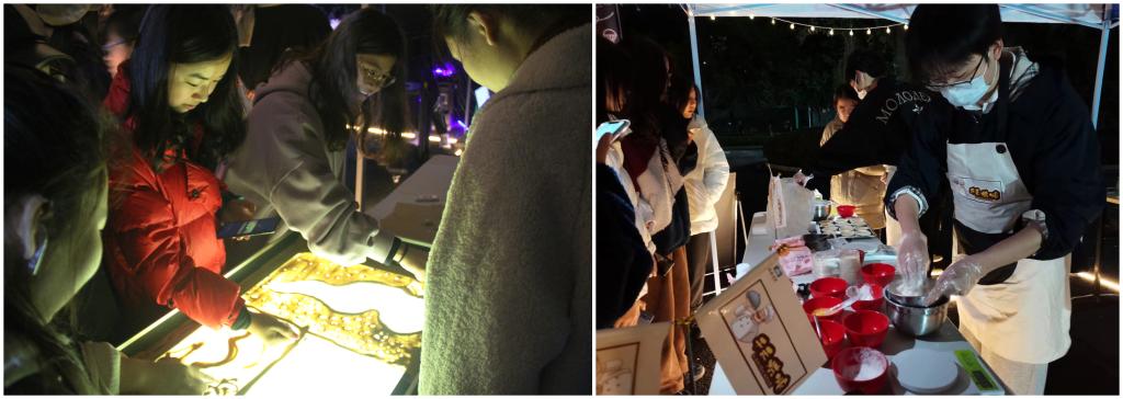 本次夜市还特别邀请到了廊桥书院千禾烘焙坊,书院学子都化身为小小烘焙师。飘香的蛋挞和小饼干满足了往来行人的味蕾,一口咬下,是甜蜜和酥脆。